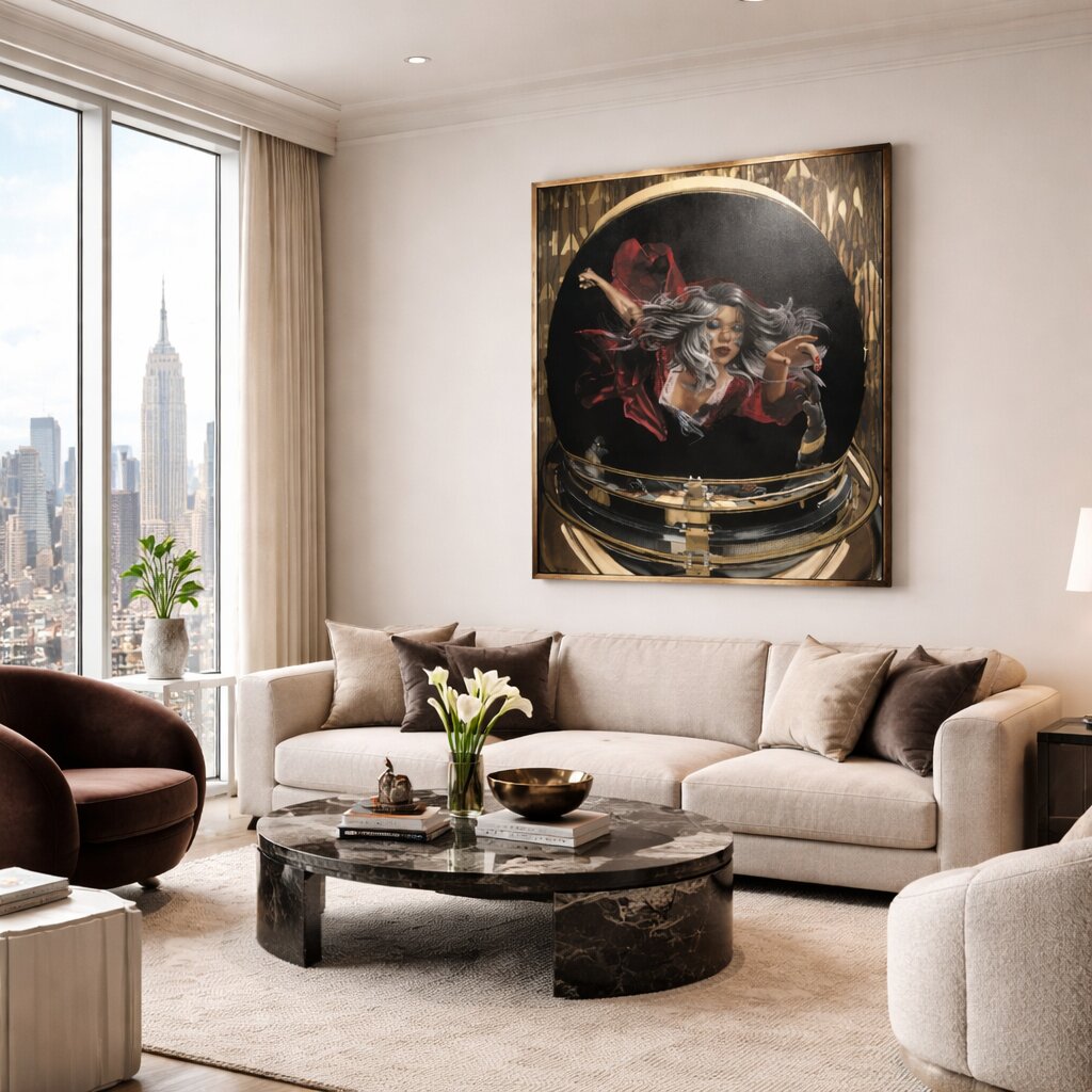 Spray Paint and Bronze Patina on Wood Panel Framed