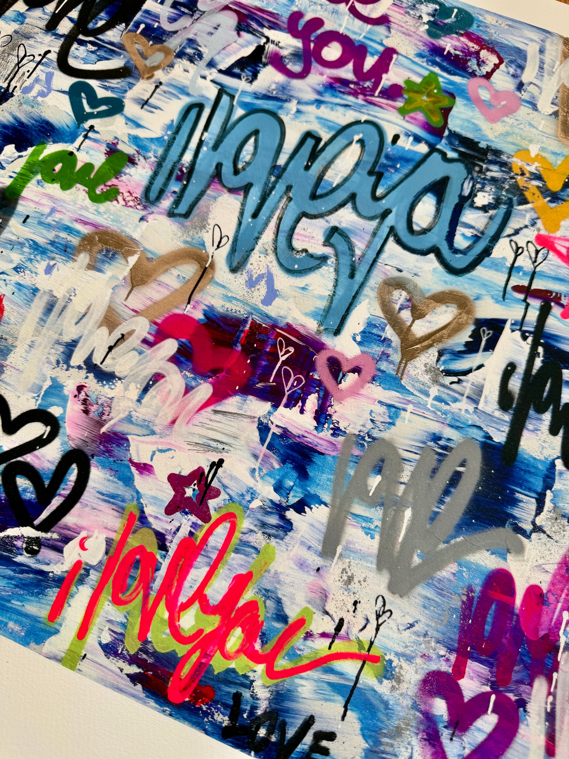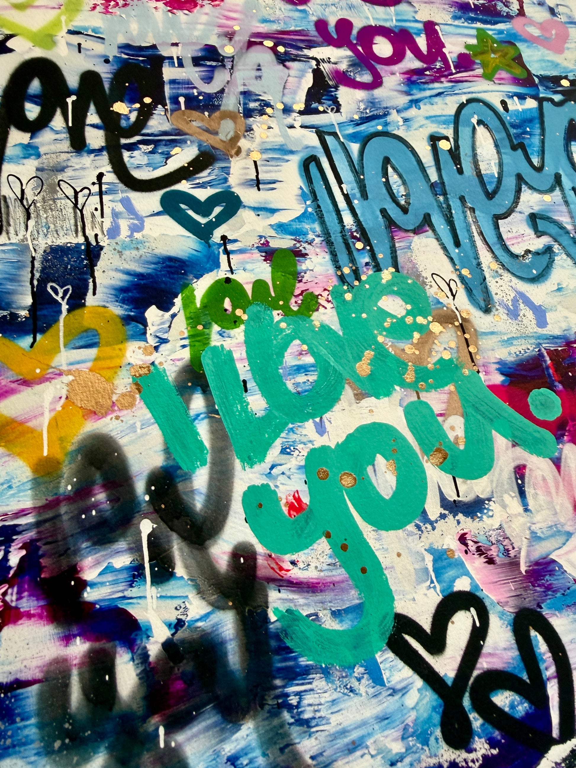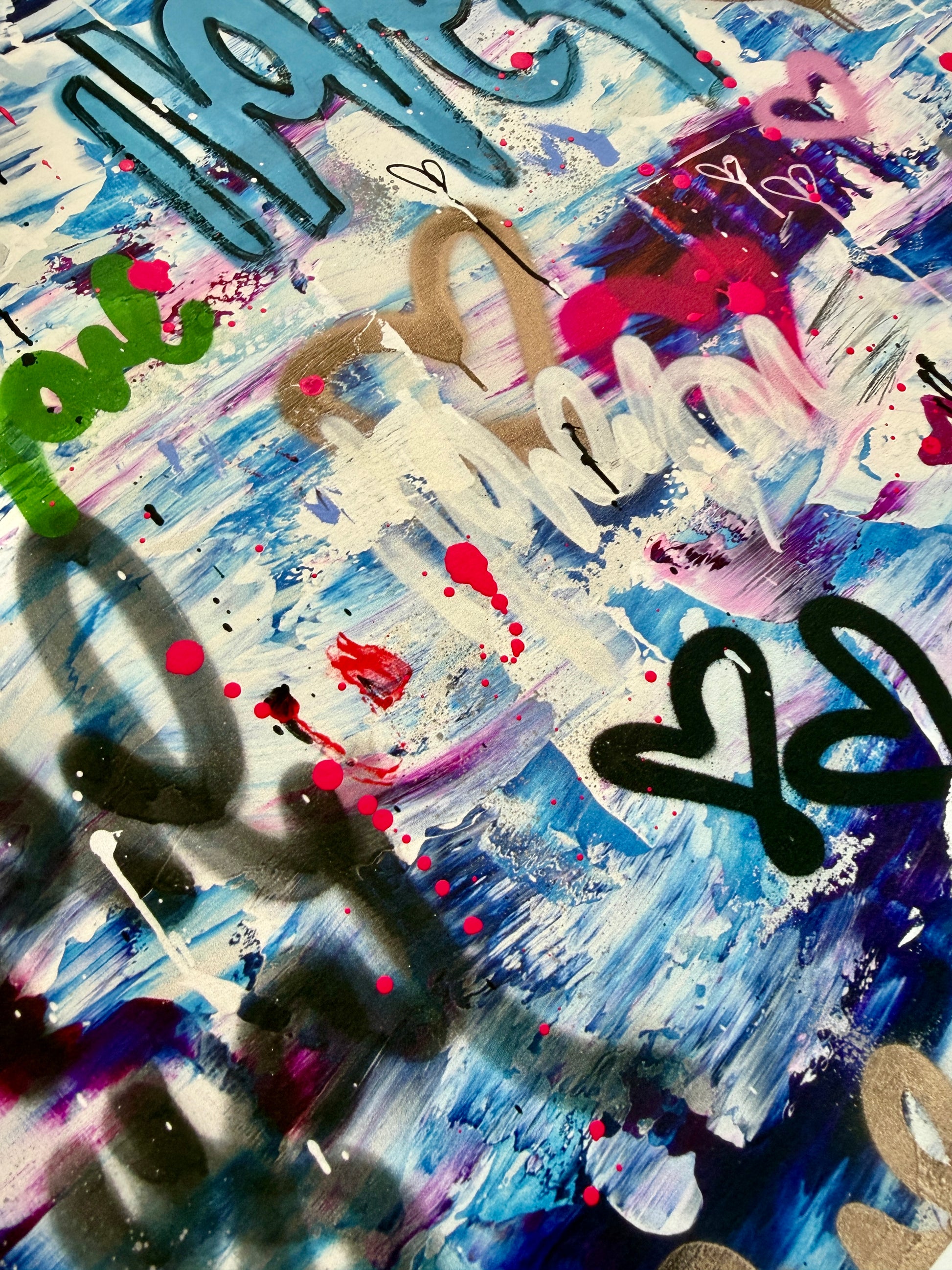 Hand Finished with acrylic, ink, spray paint, & custom blended texture