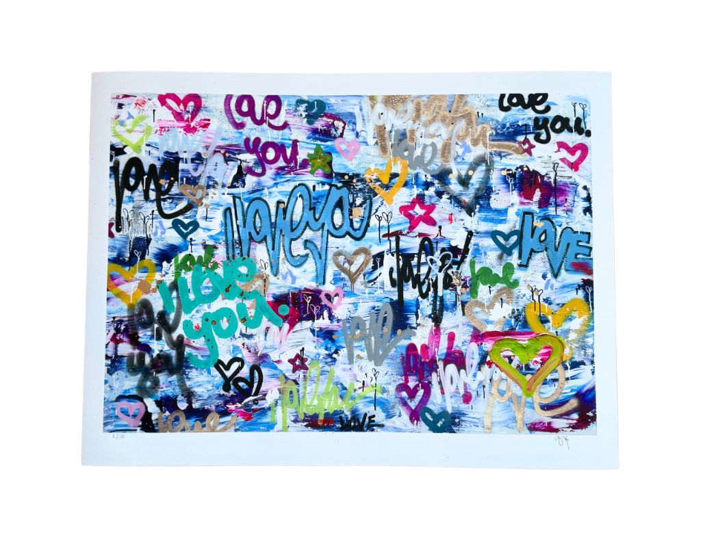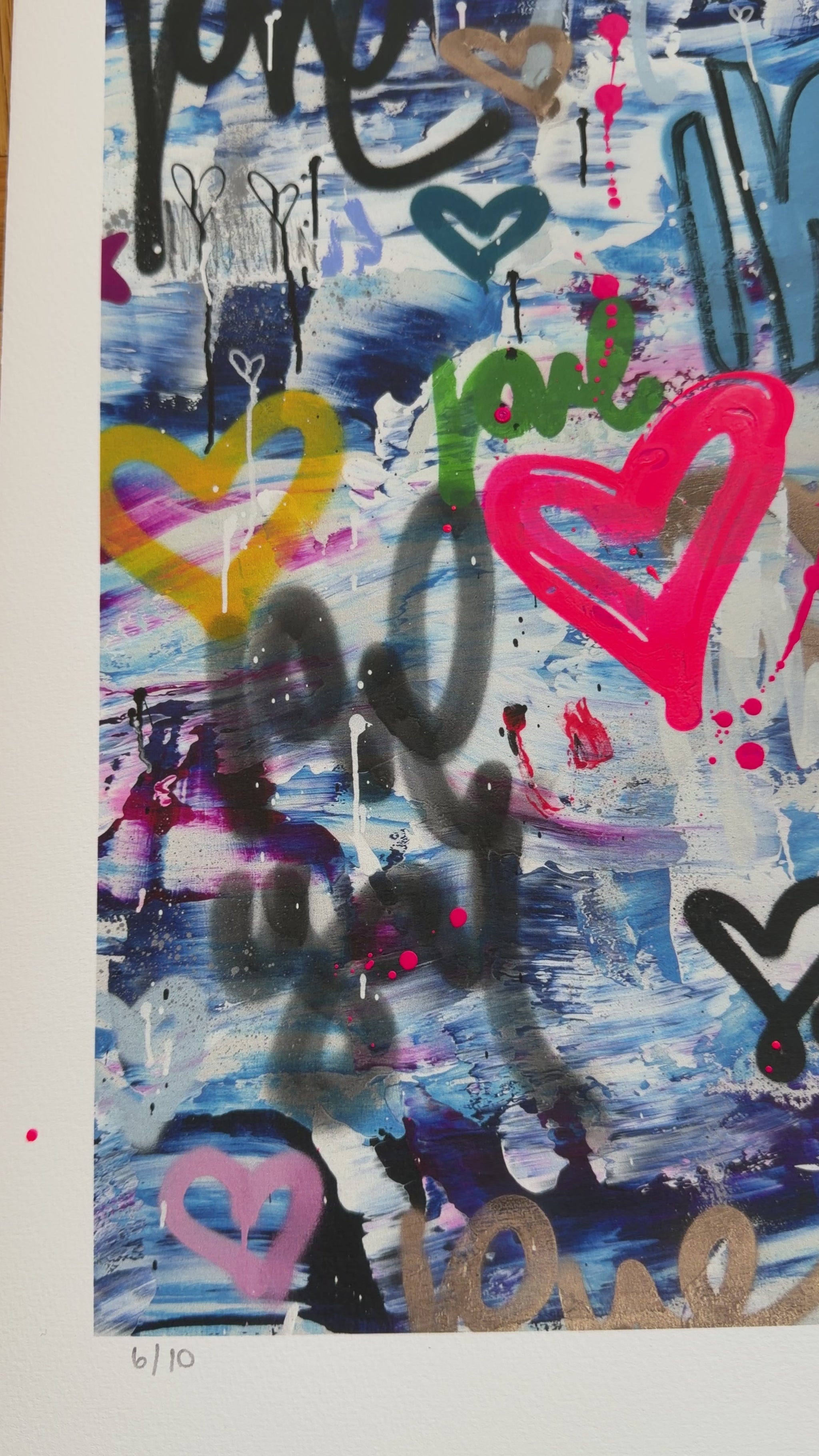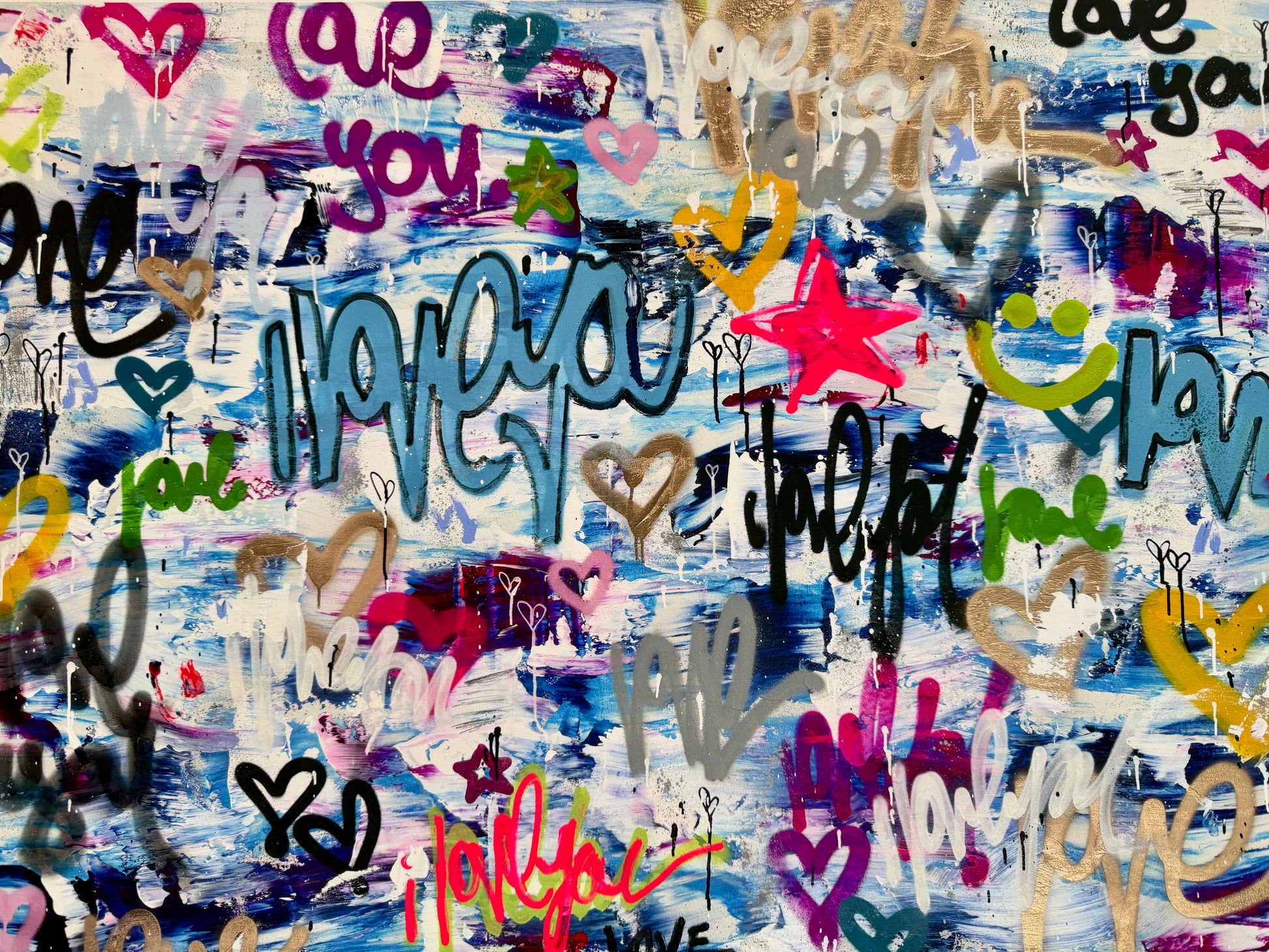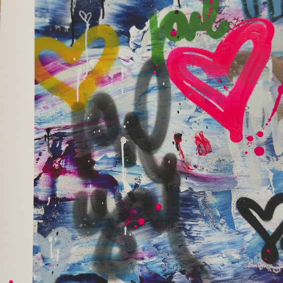 Hand Finished with acrylic, ink, spray paint, & custom blended texture