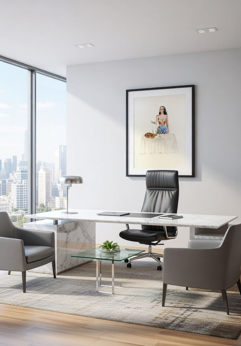 Works from this series are often placed in contemporary interiors where character-driven pieces act as focal points—particularly in spaces that mix humor, culture, and design.
