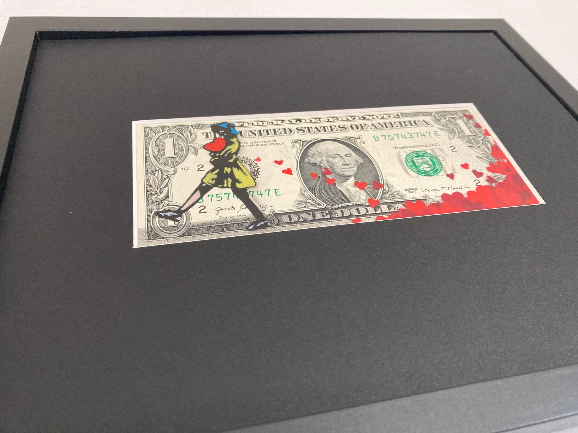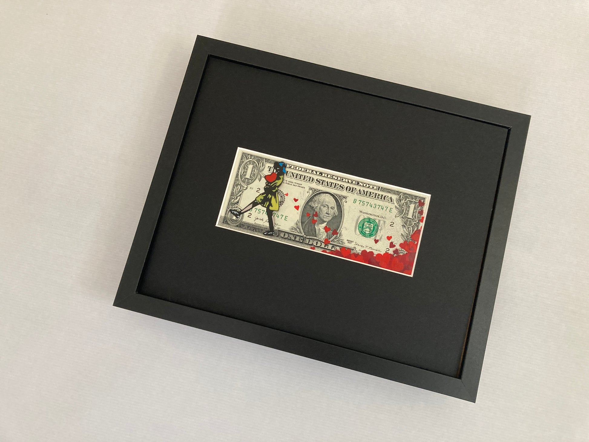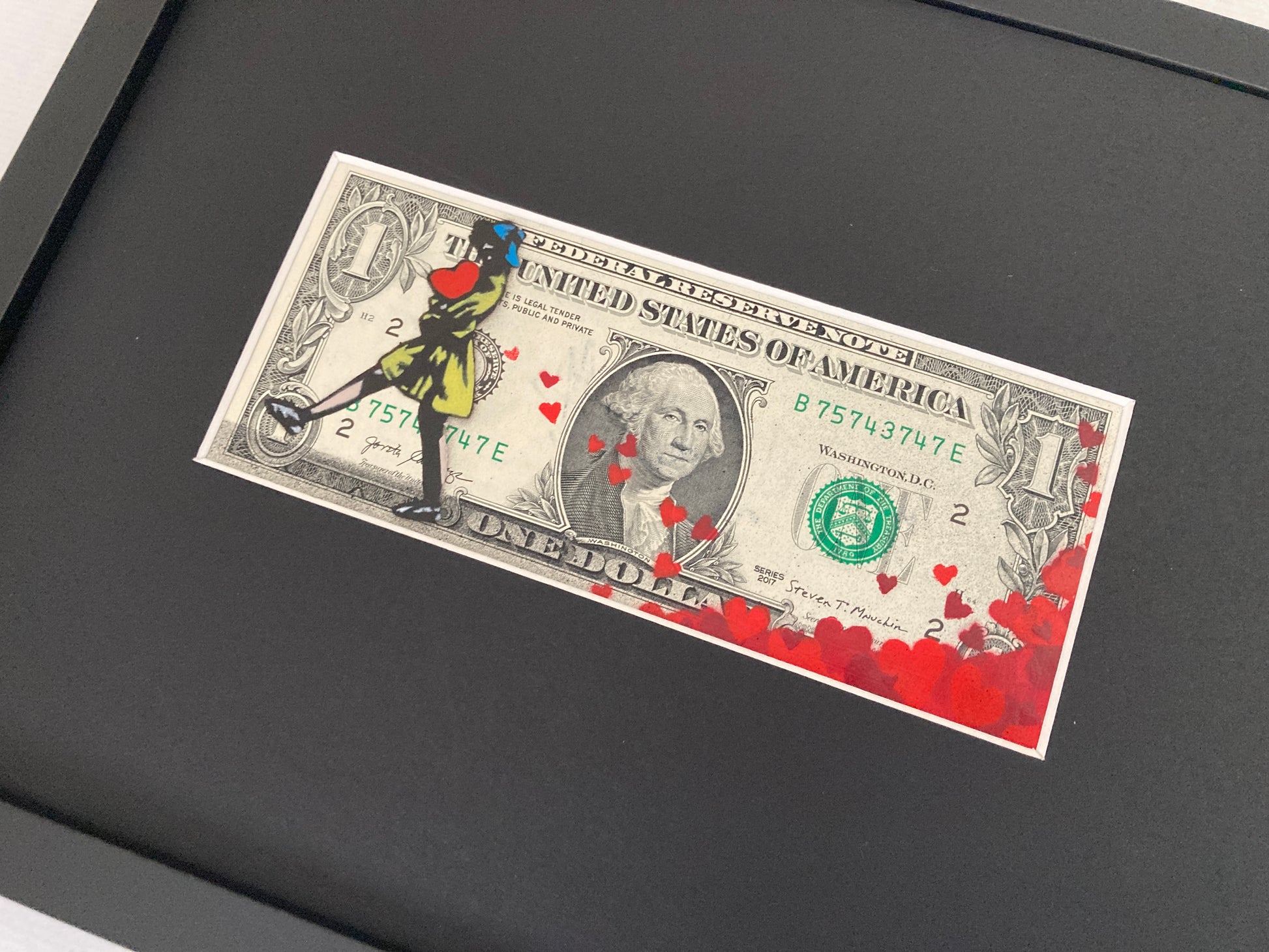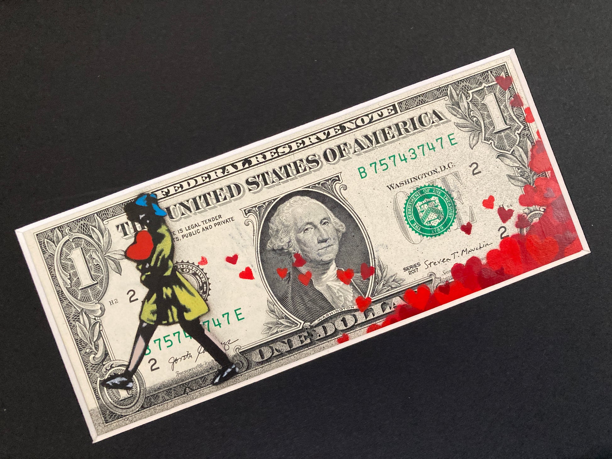Edition-versjon – røde hjerter-utgave malt på ekte usirkulert $1-seddel