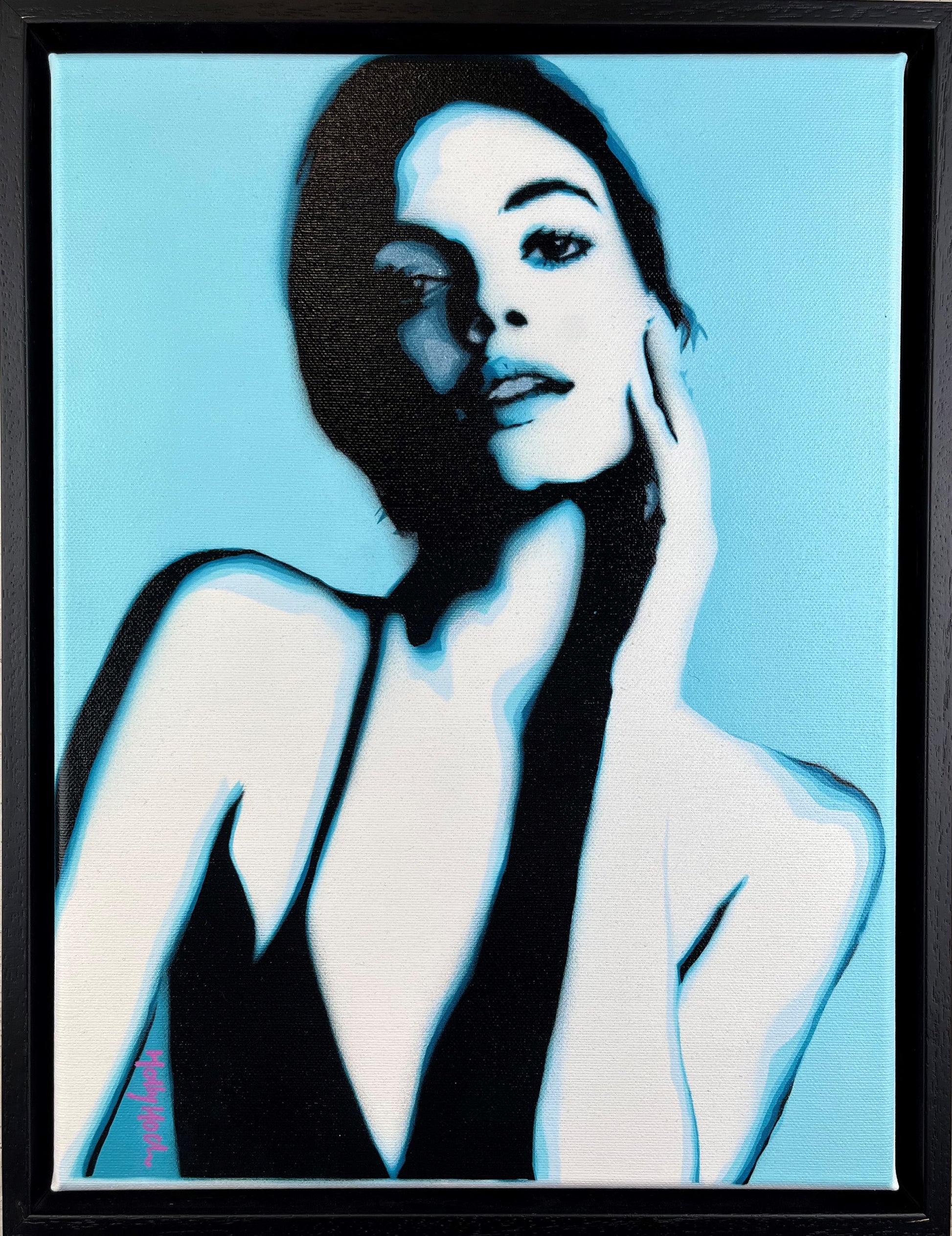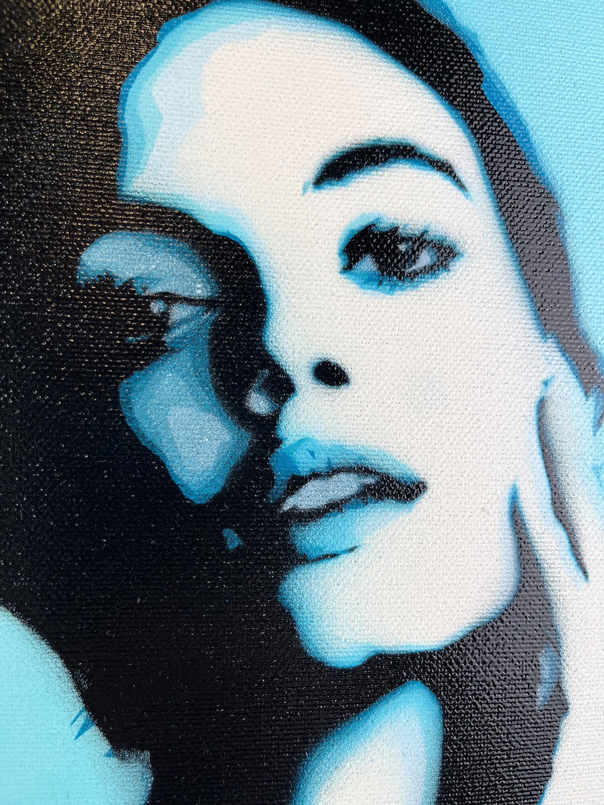 Maleri laget med håndkuttede sjablonger og spraymaling på lerret.