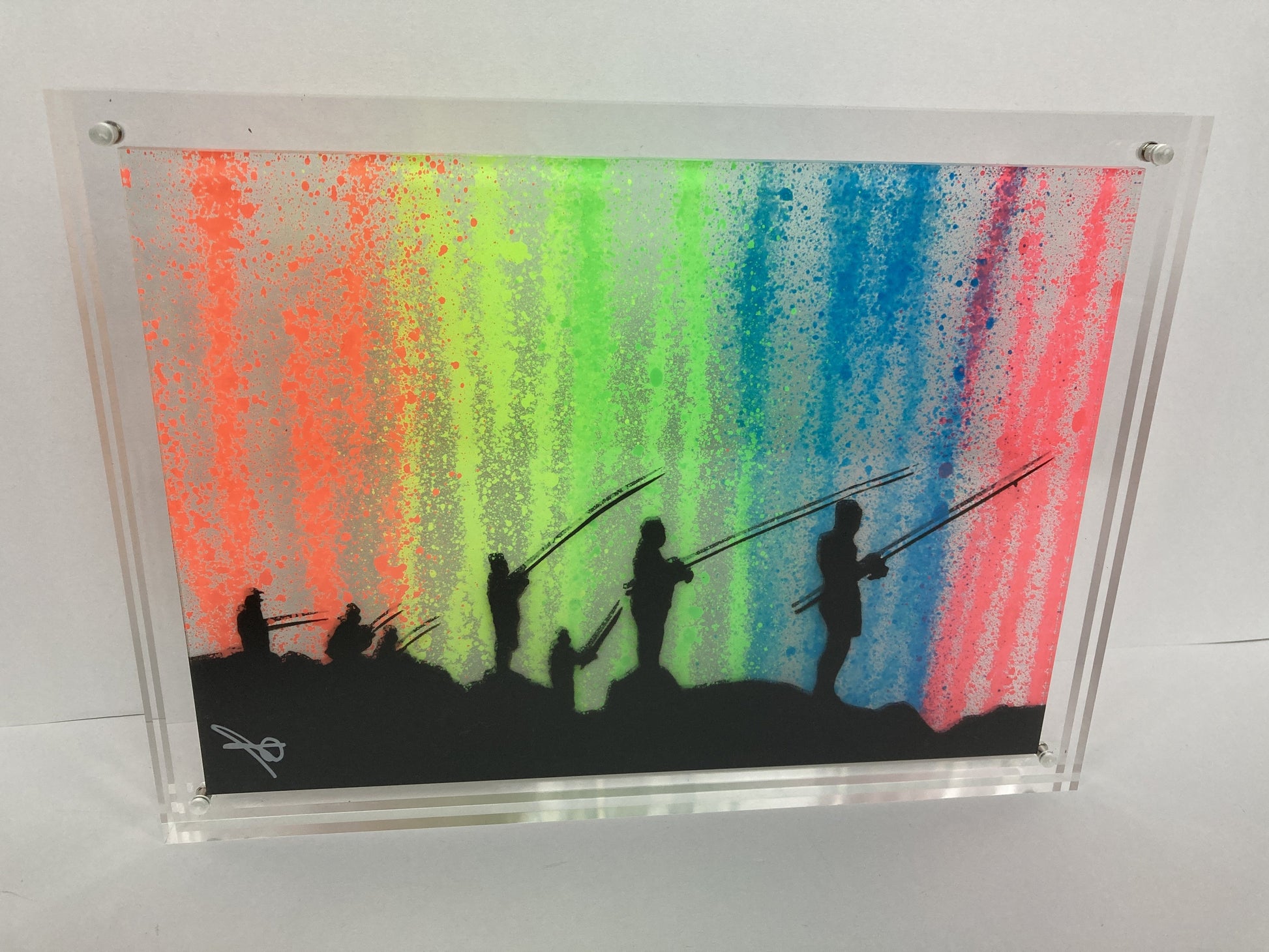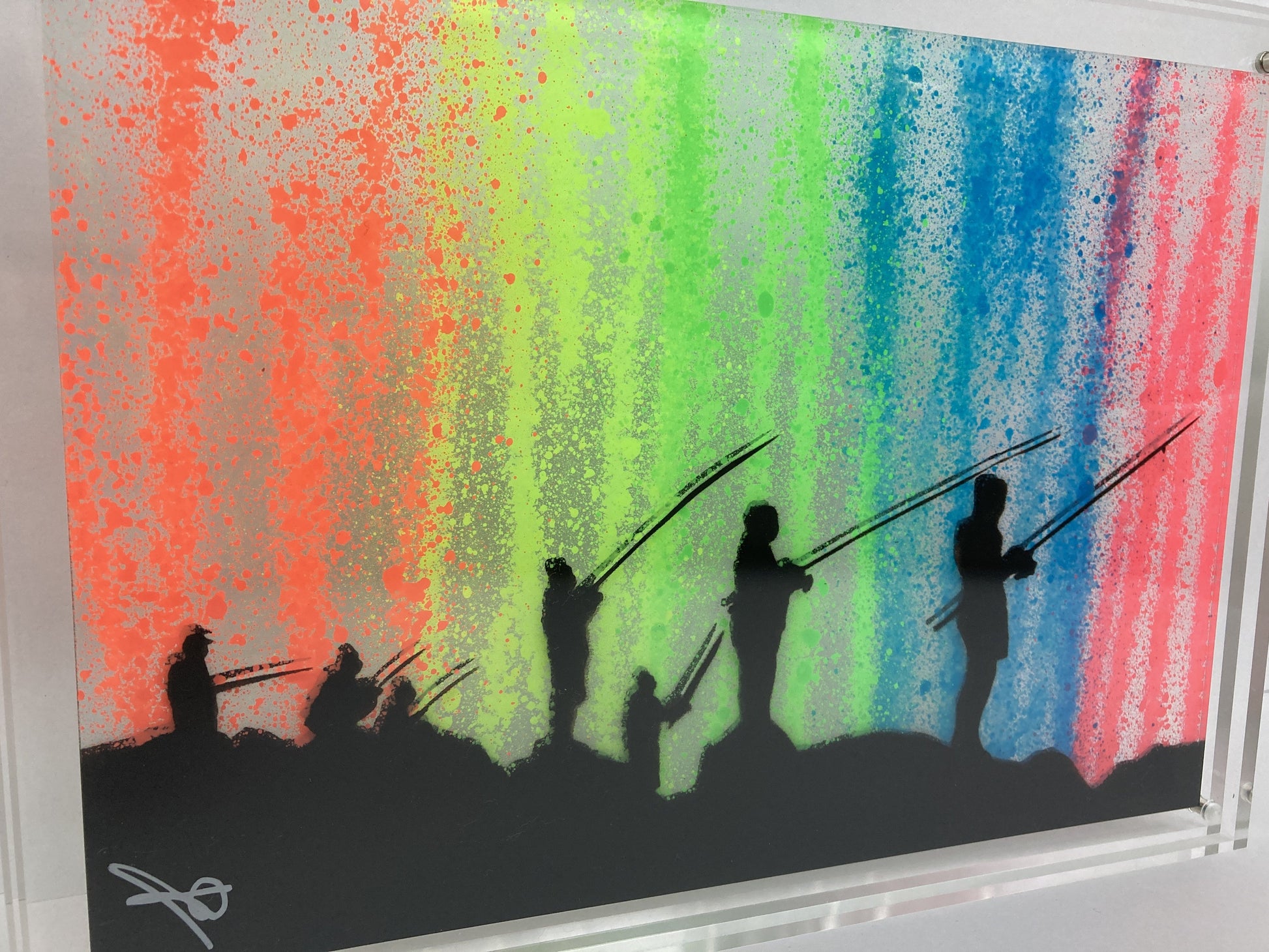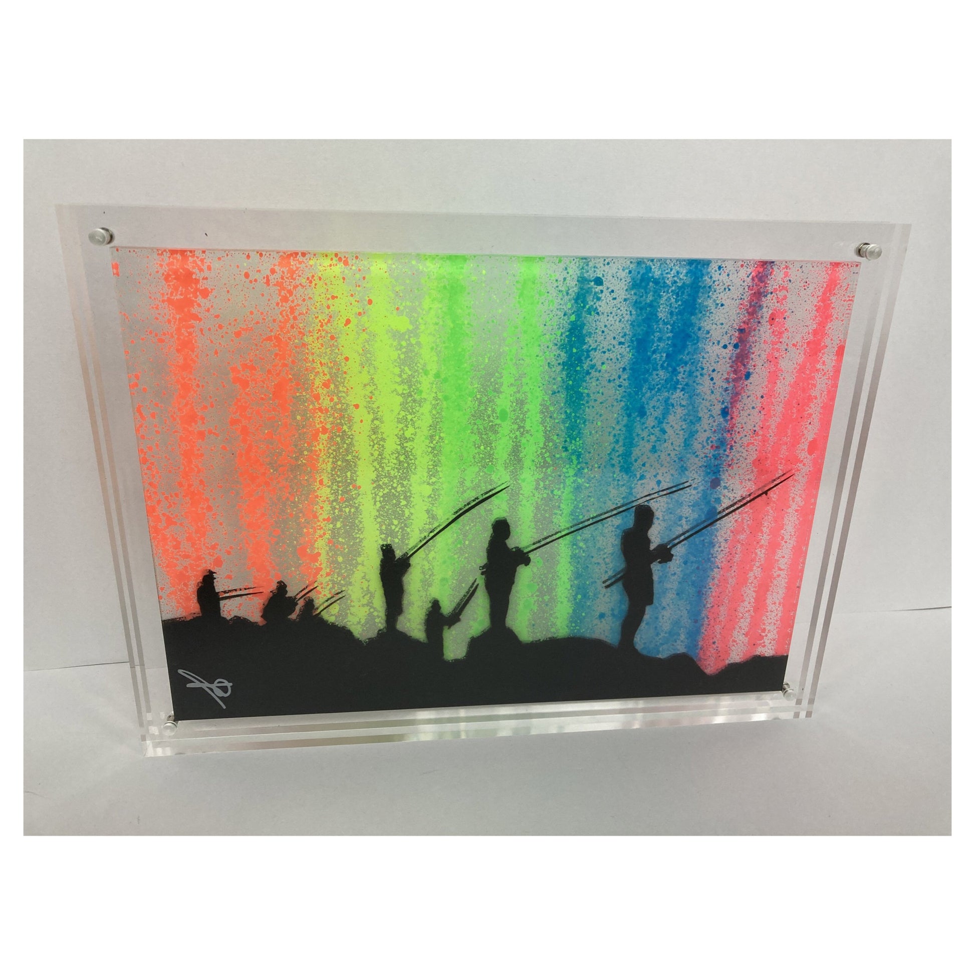 Edition-versjon – fluorescerende sprutstriper på klar Perspex akrylplate