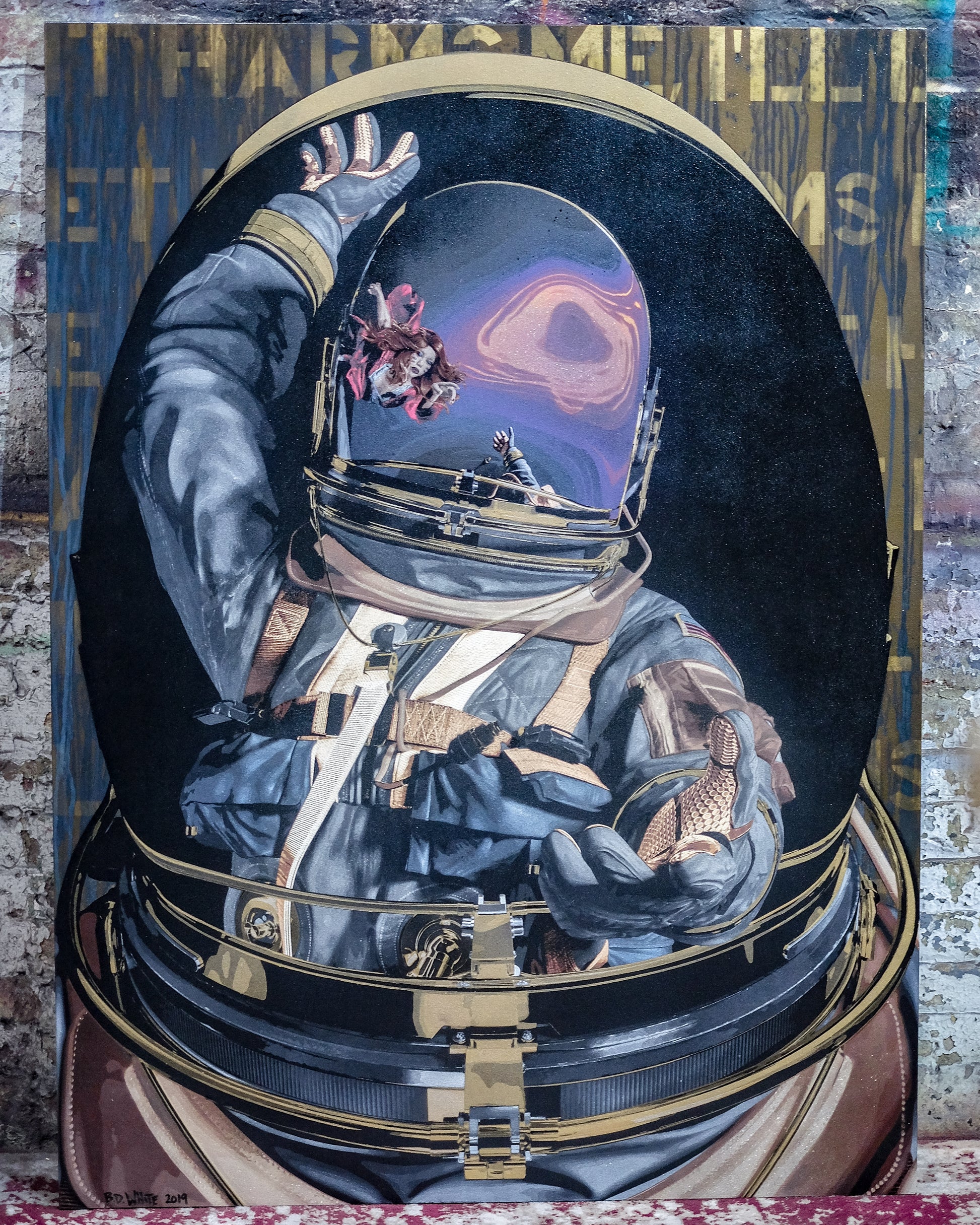 Spraymaling og bronsepatina på trepanelinnrammet