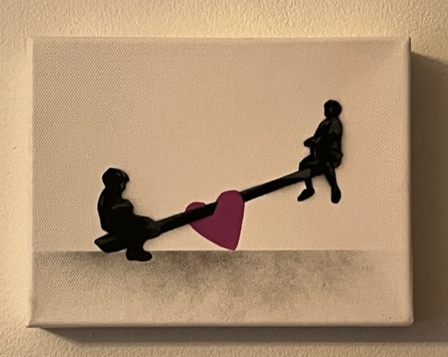 3 farger sjablong og spraymaling på dyp kant lerret.