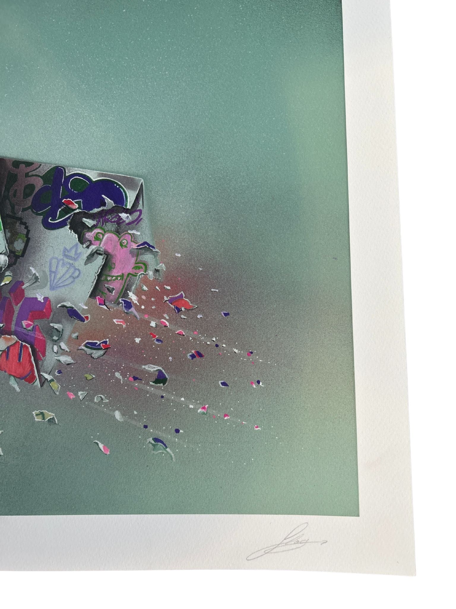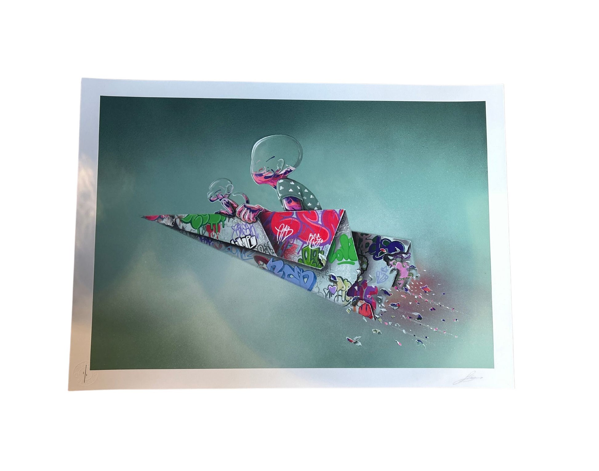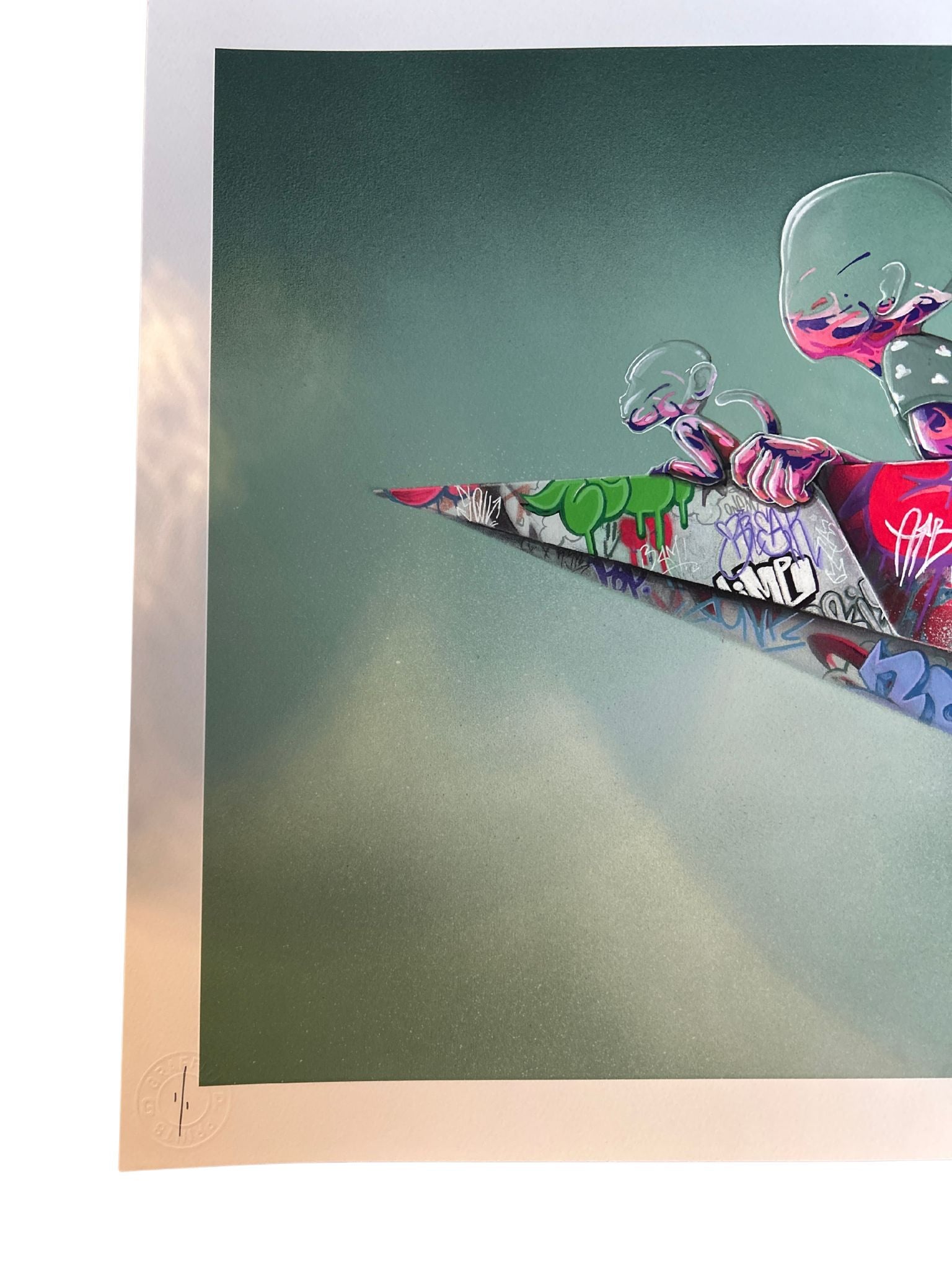 Arkivpigmentutskrift på 300 g/m2 Somerset-papir med 1 fargeskjermtrykk, deretter preget for å få bildet til å springe ut.