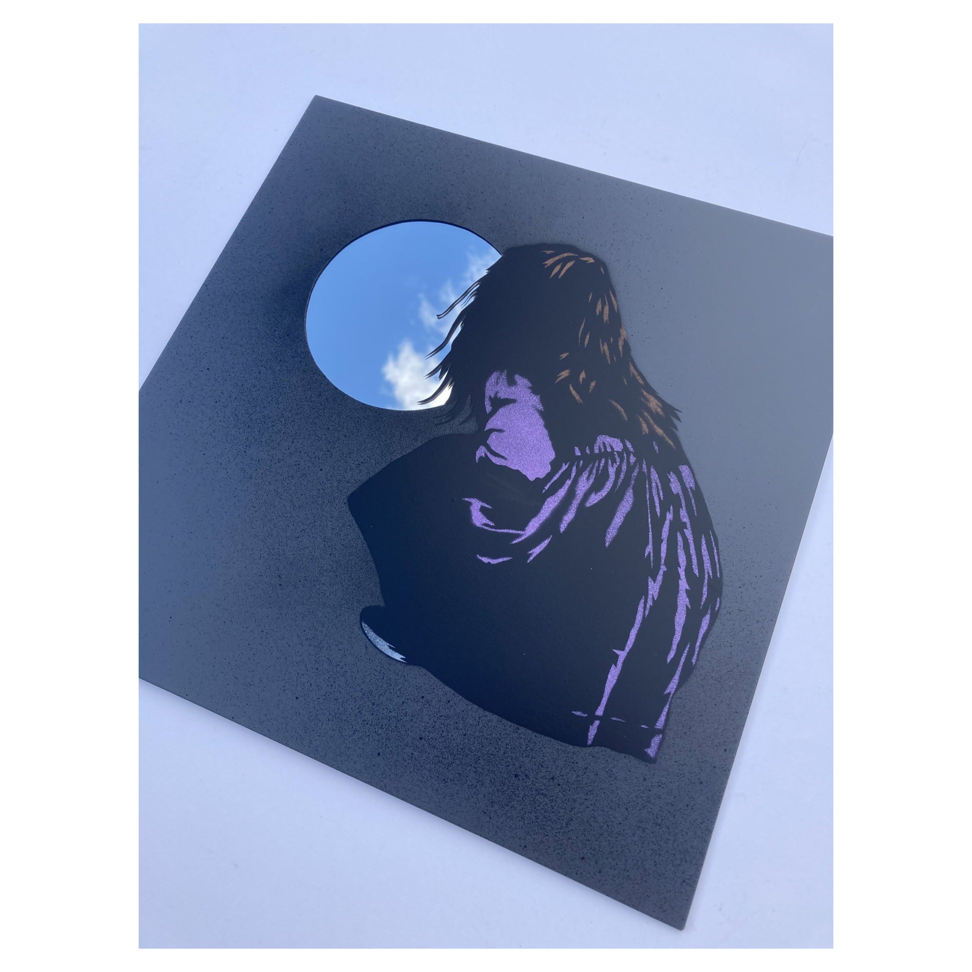 Beskrivelse – 5 farger sjablong og spraymaling på glassspeil. Signert, datert og nummerert på baksiden.