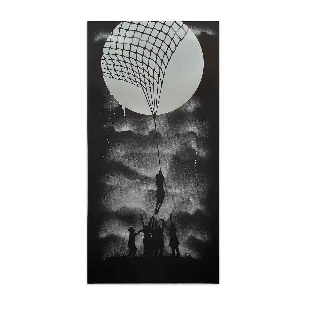 3 farger håndtrukket silketrykk (det svarte er trykt slik at spesialpapiret kan se gjennom når månen/skyene består av 2 halvtone metallisk sølvblekk)