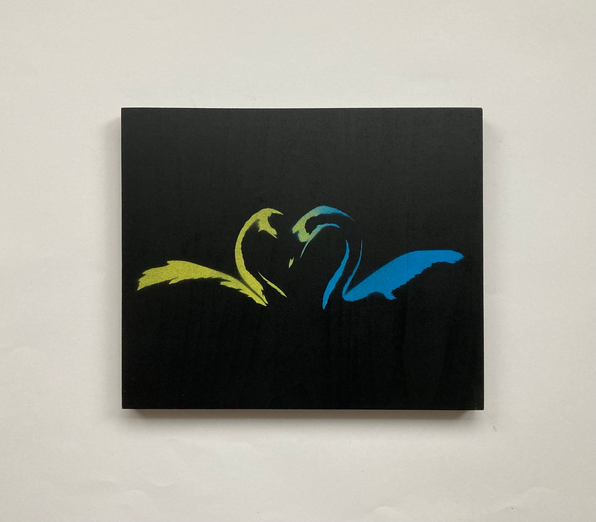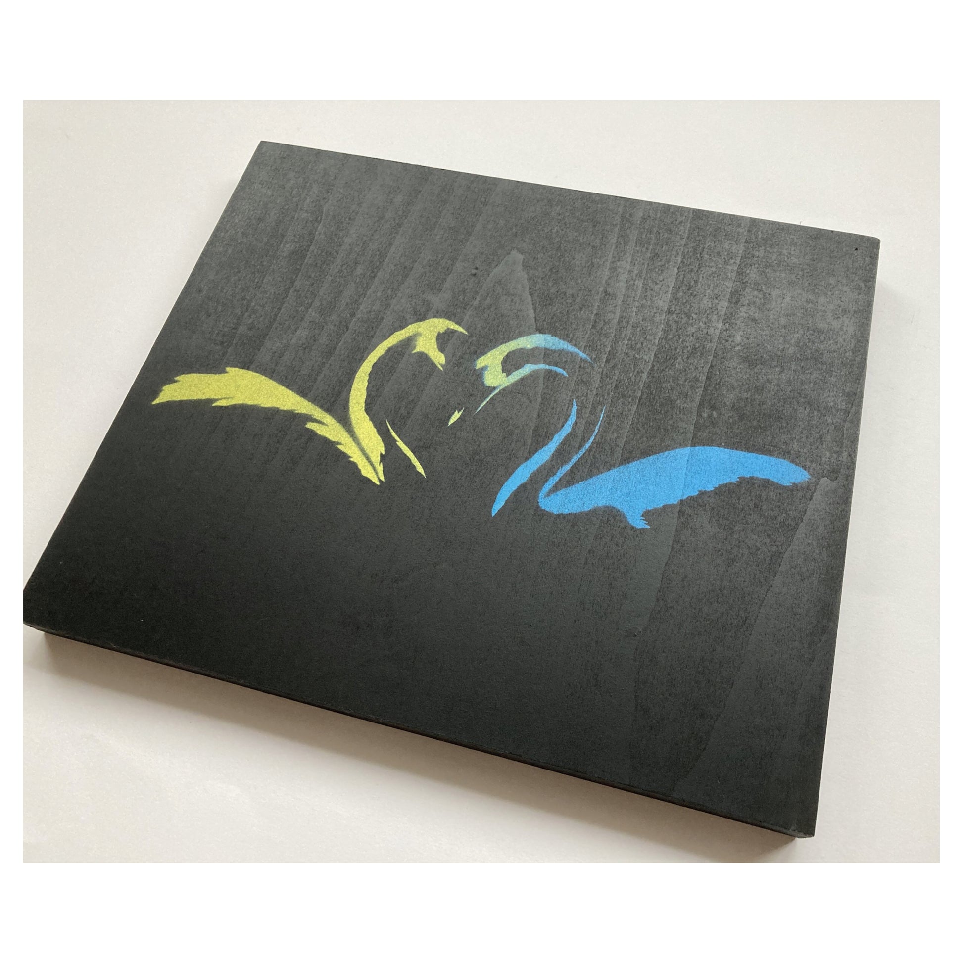 Edition-versjon – svart bakgrunn med blå og gul spraymalingsblanding på kunstnertrepanel