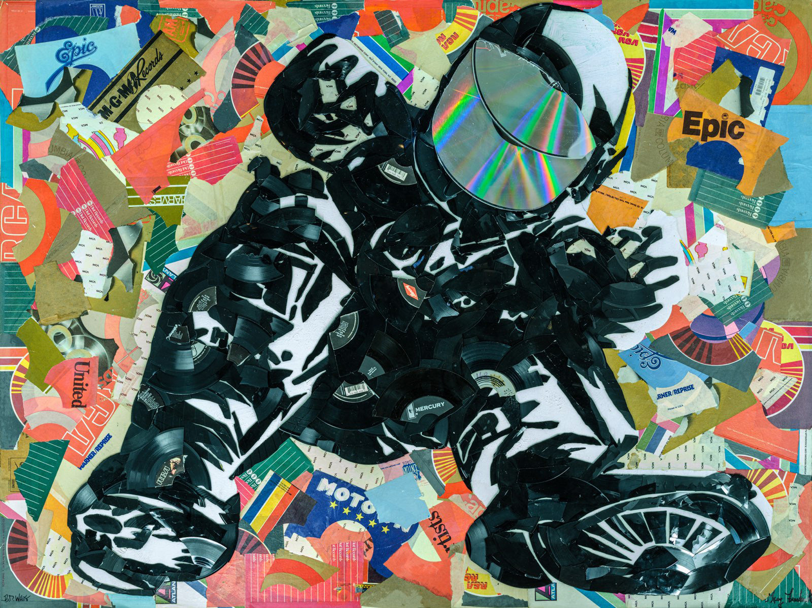 Laget med vinylplater, deres emballasje og laserplater på 36 x 48 lerret