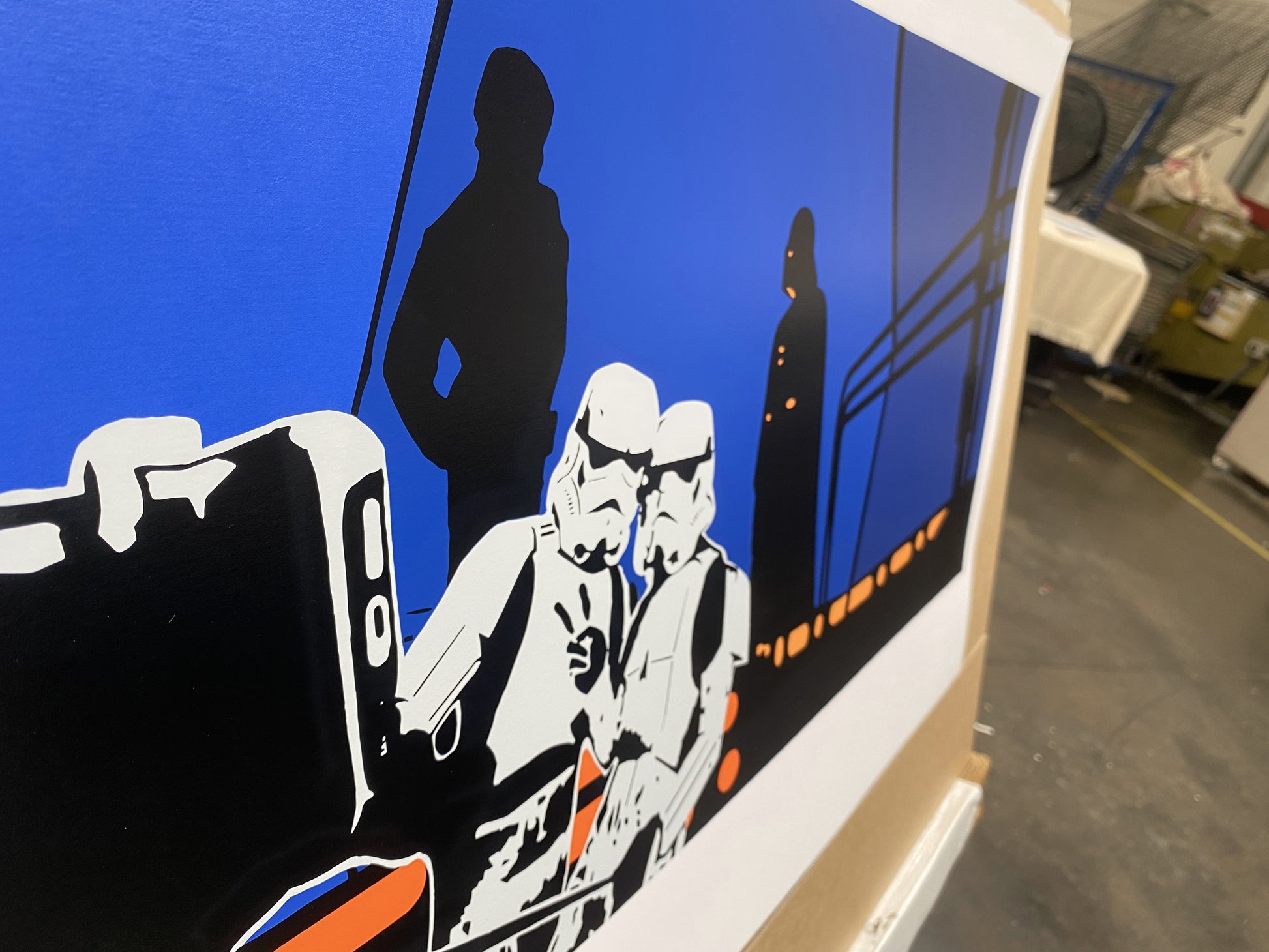 • Begrenset opplag 8-lags silketrykk på hvitt Fabriano-papir (300gsm).
