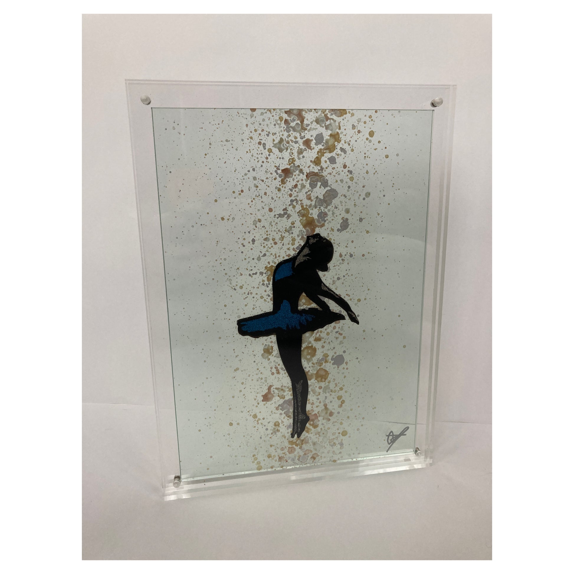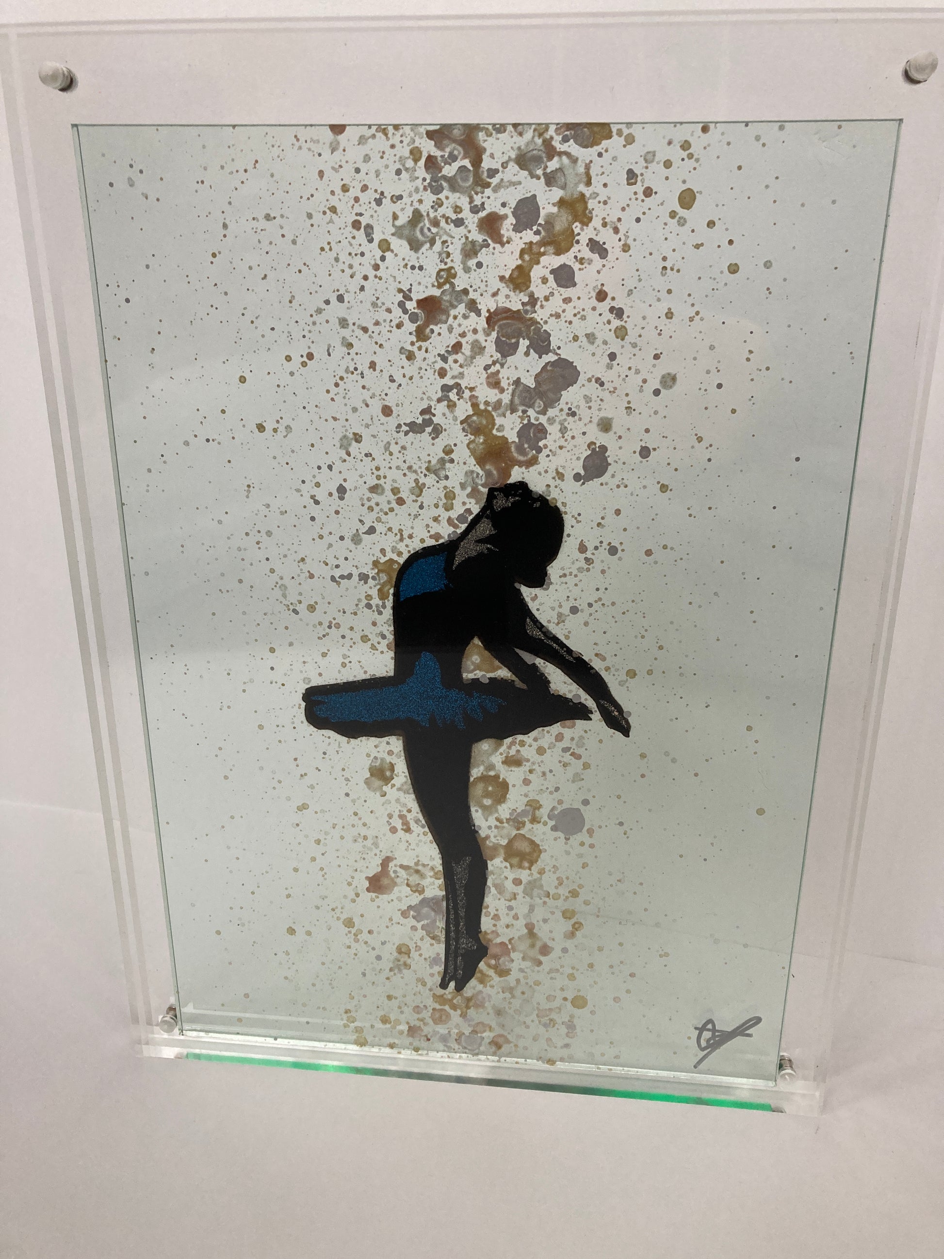 Edition-versjon – matt gull, sølv og metallisk titansprut med himmelblå kjole på klar Perspex akrylplate