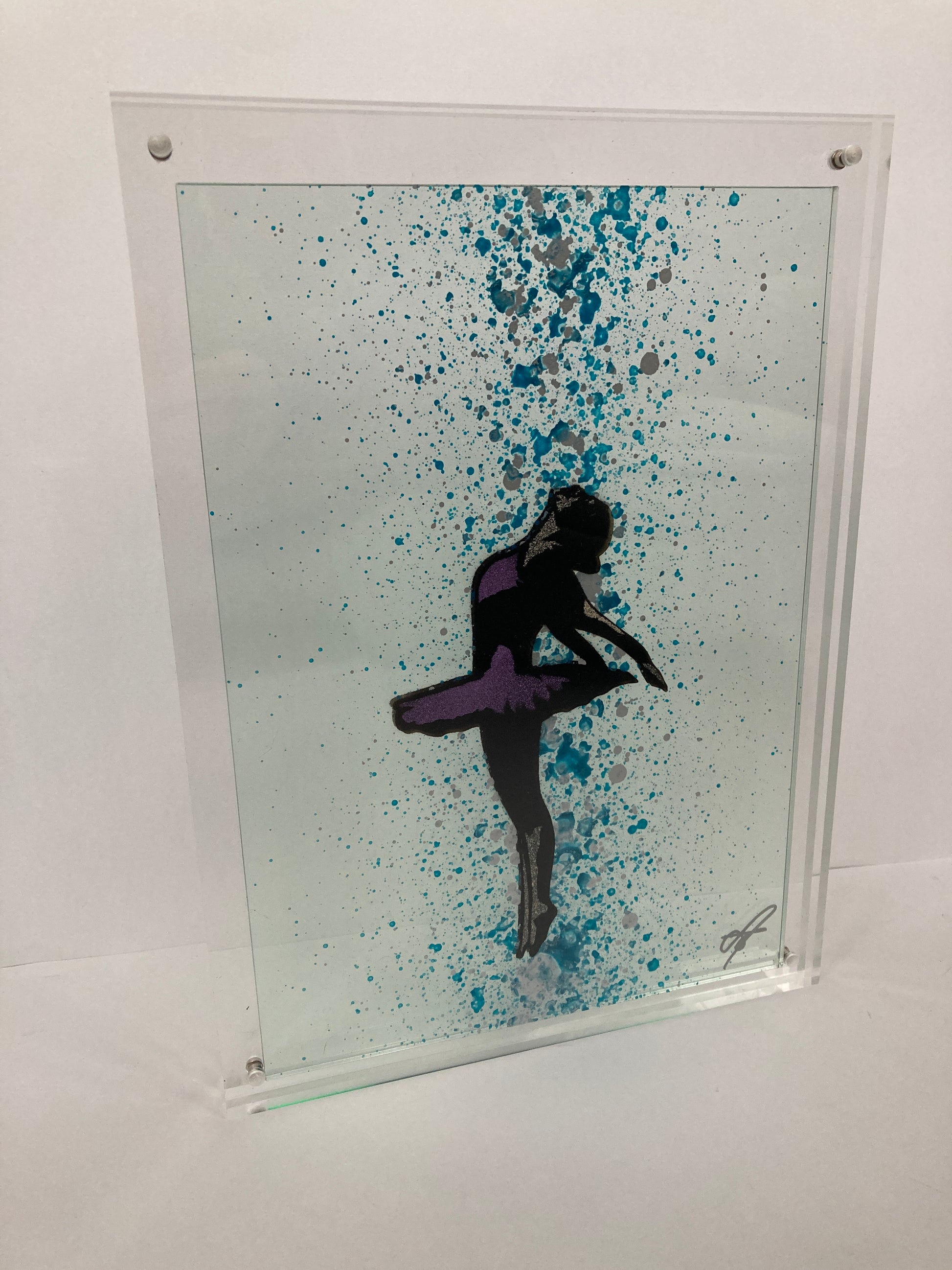 Edition-versjon – sølv, metallisk titan og metallisk karibisk blå sprut med bratsj lilla kjole på klar Perspex akrylplate
