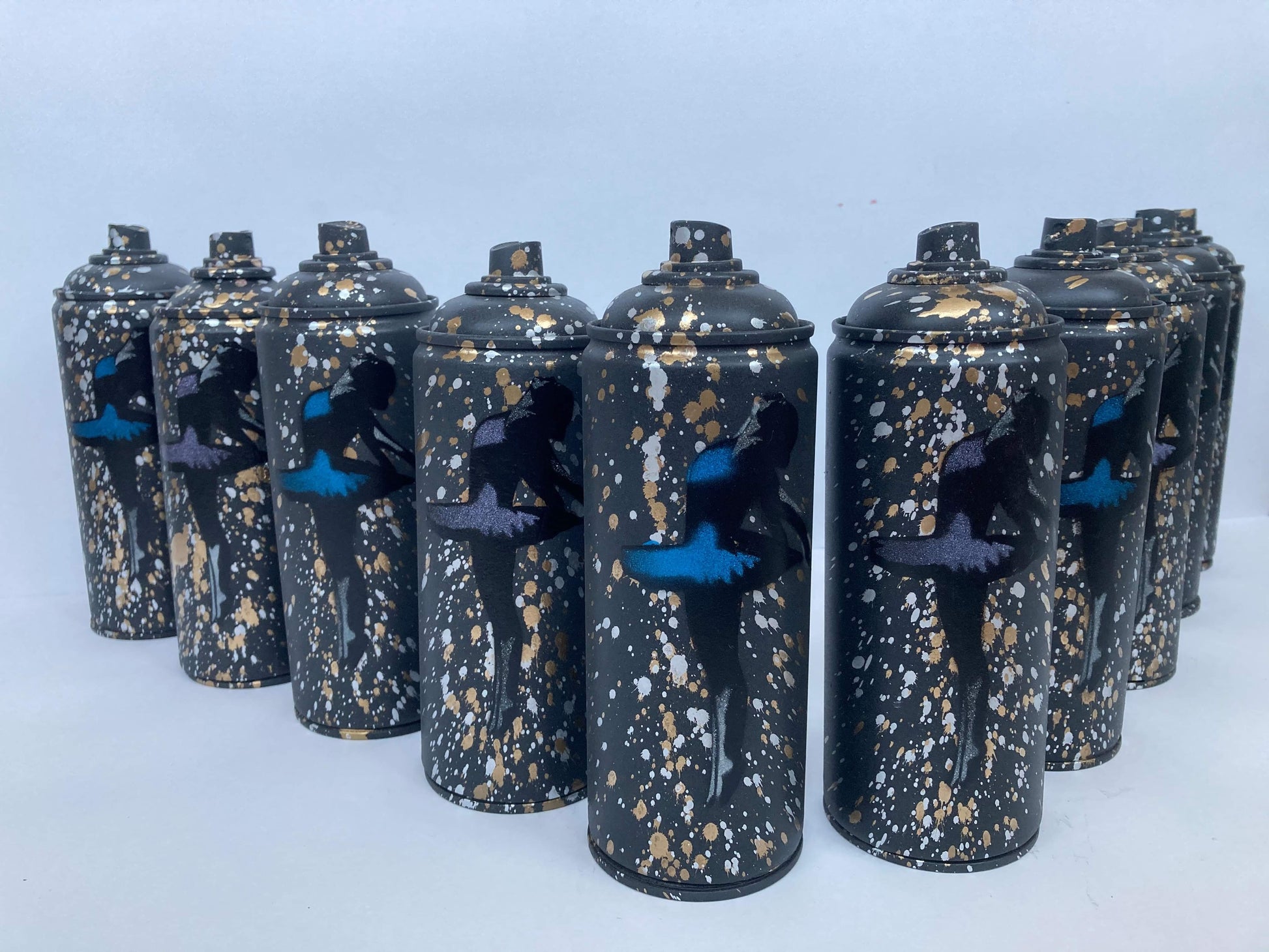 Beskrivelse – 6-farget sjablong og spraymaling på tomme spraymalingsbokser. Håndmalt - signert, datert og nummerert på basen - leveres i en spesialmalt boks med COA.