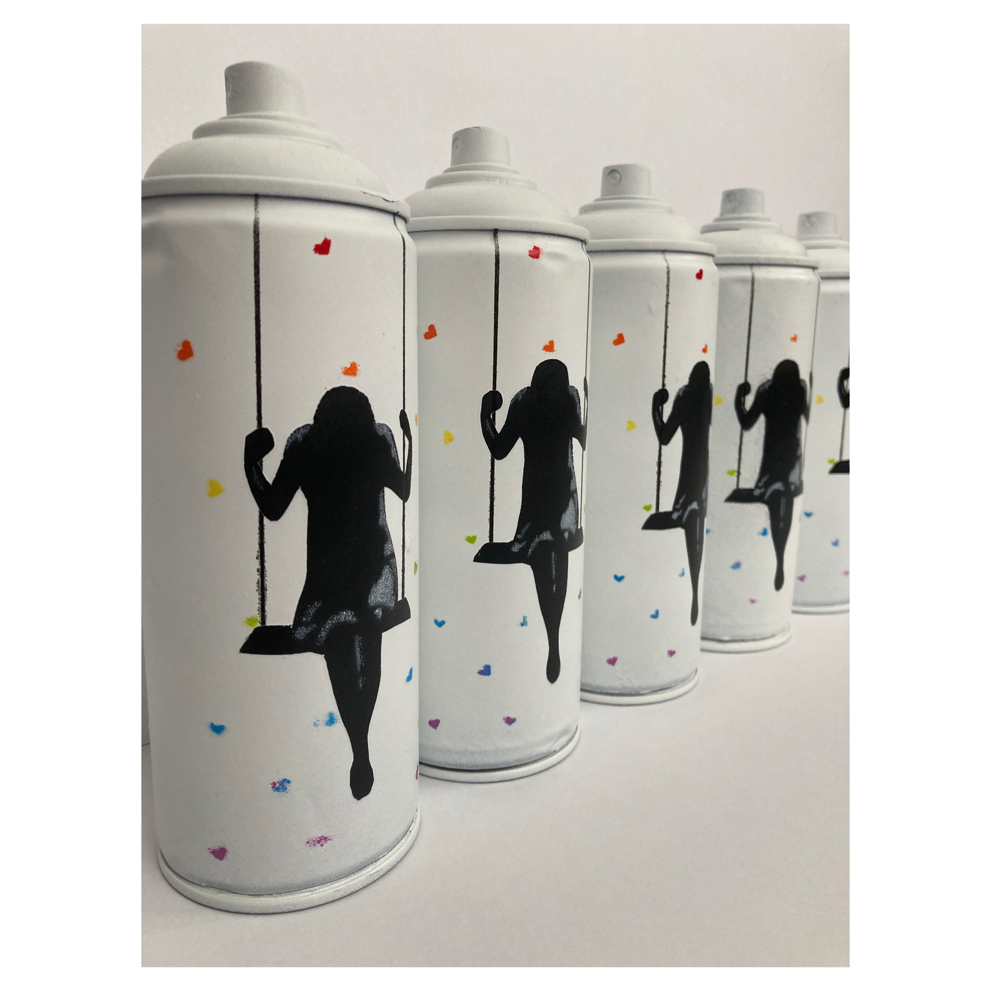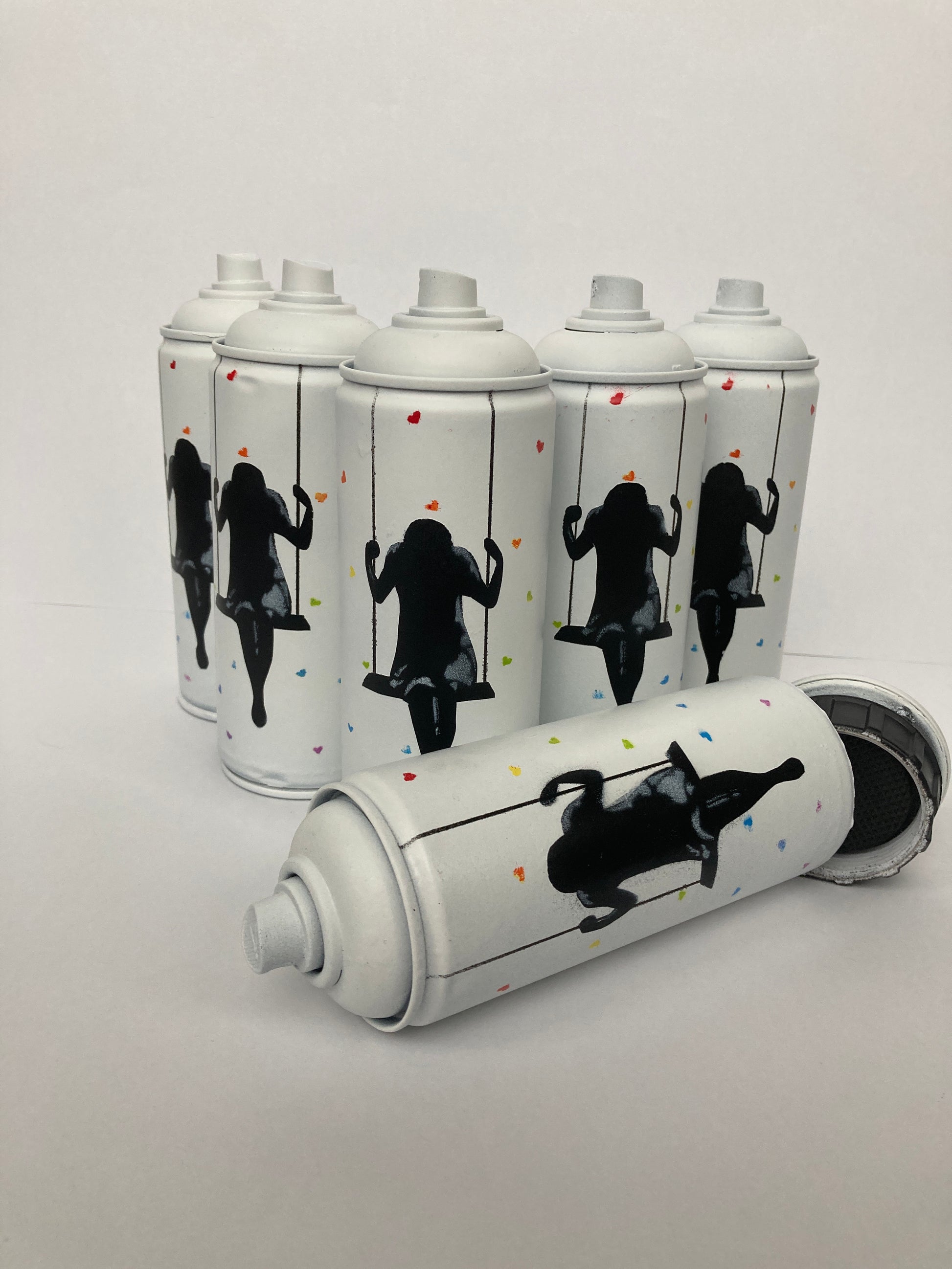 Beskrivelse – 6-farget sjablong og spraymaling på tomme spraymalingsbokser. Håndmalt - signert, datert og nummerert på basen - leveres i en spesialmalt boks med COA.