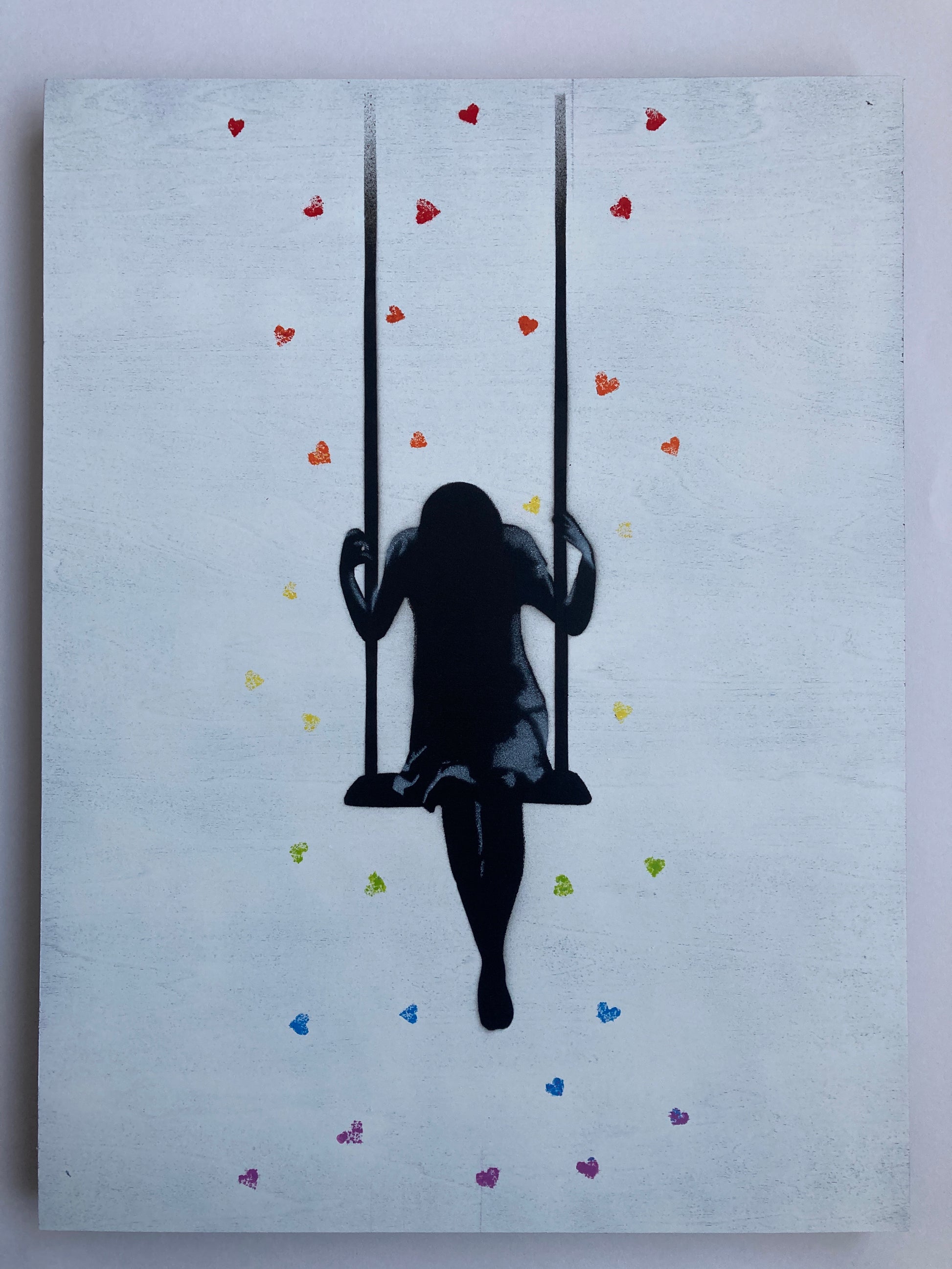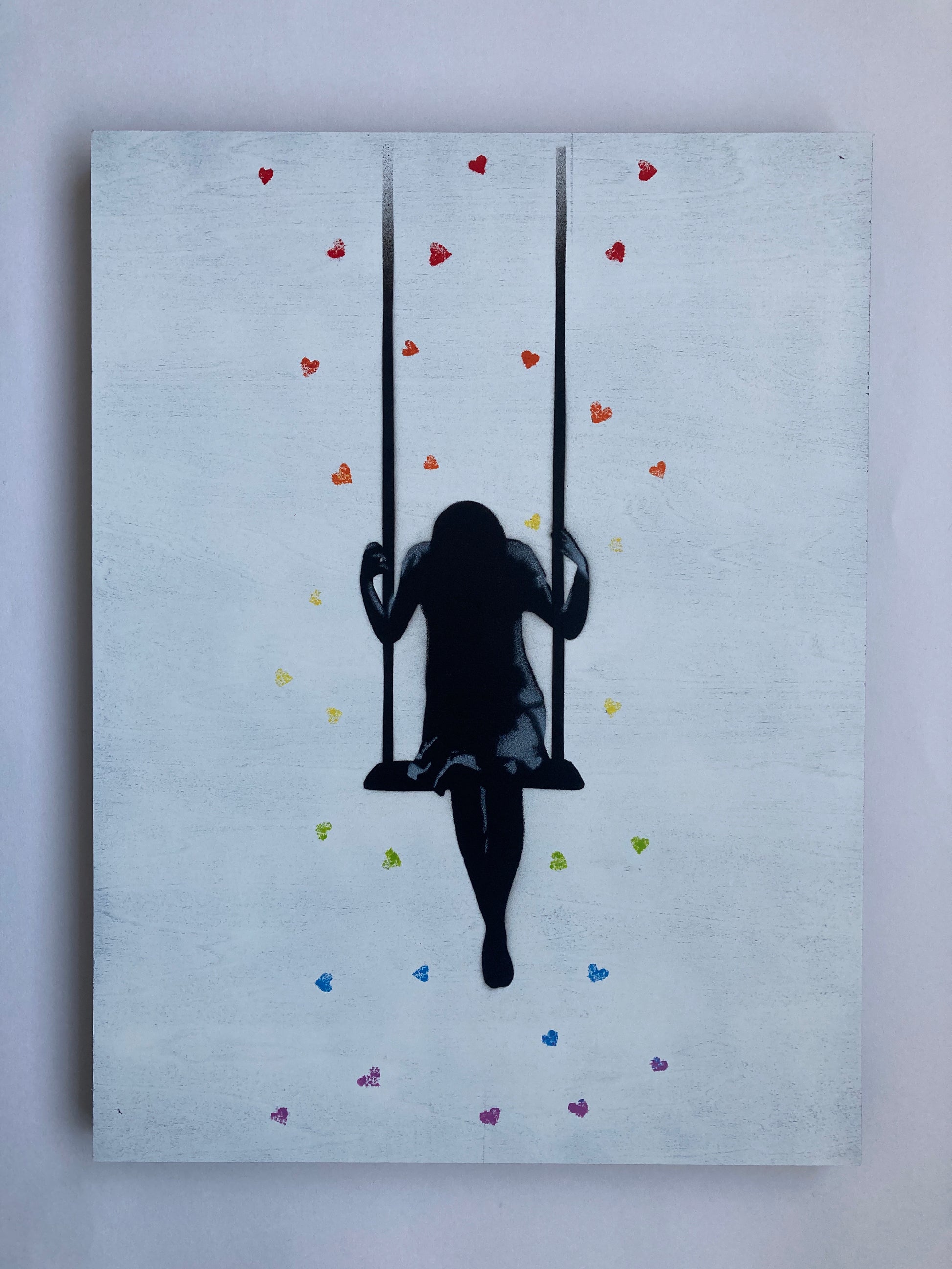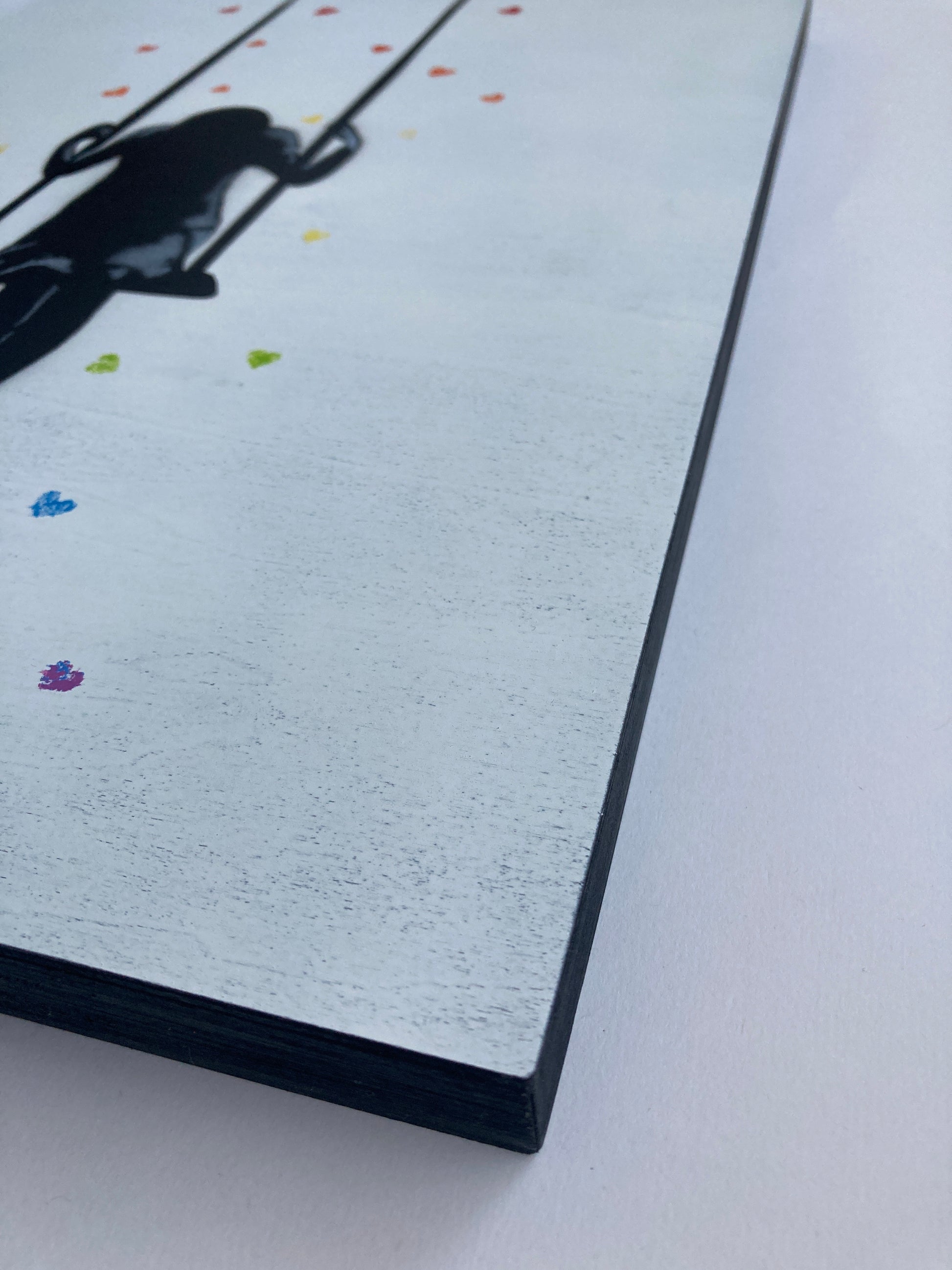 Swinging through Showers of Affection - Rainbow Wood Panel