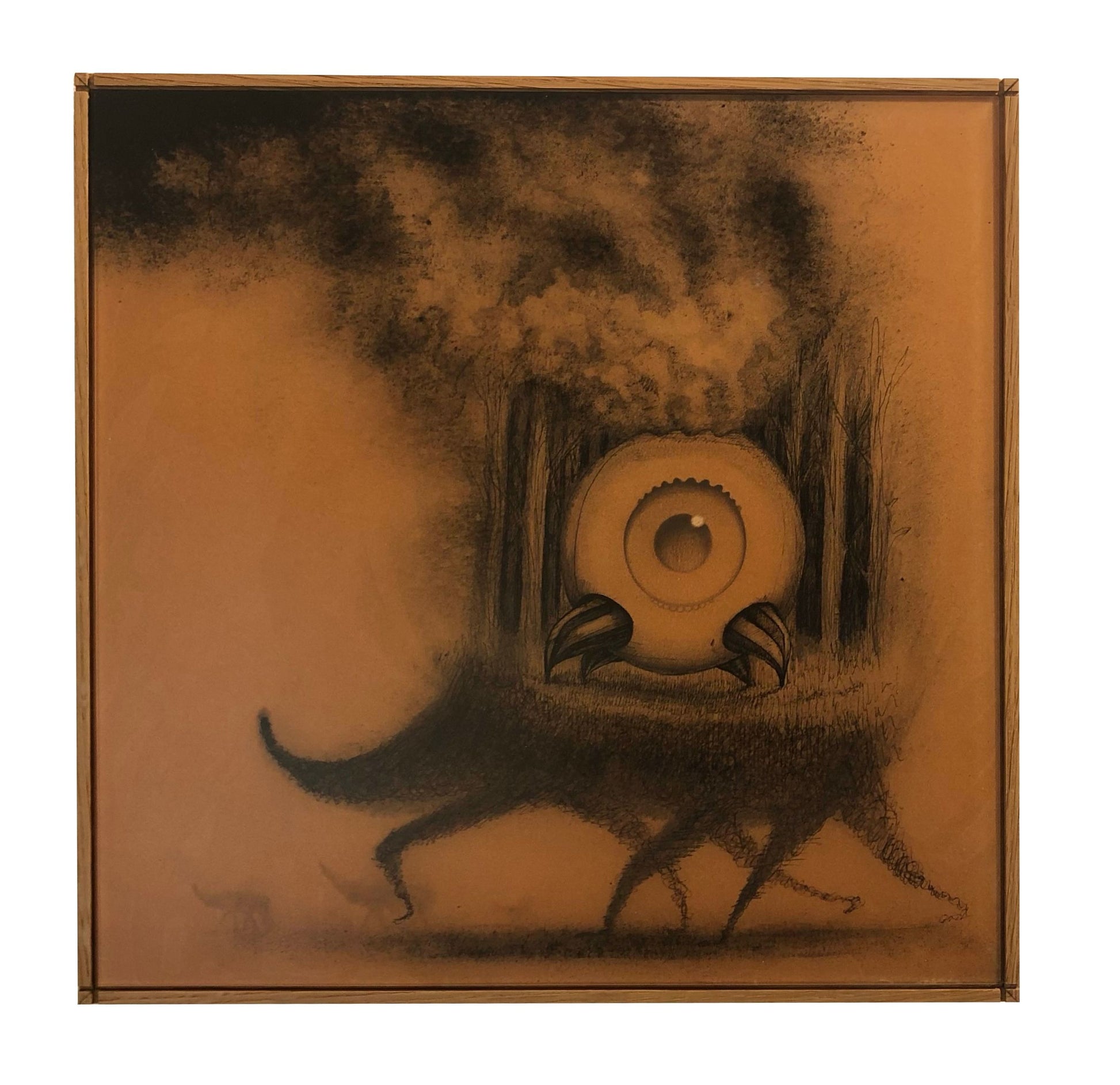 Kull, blekkpenn, pulvermaling, harpiks, papir