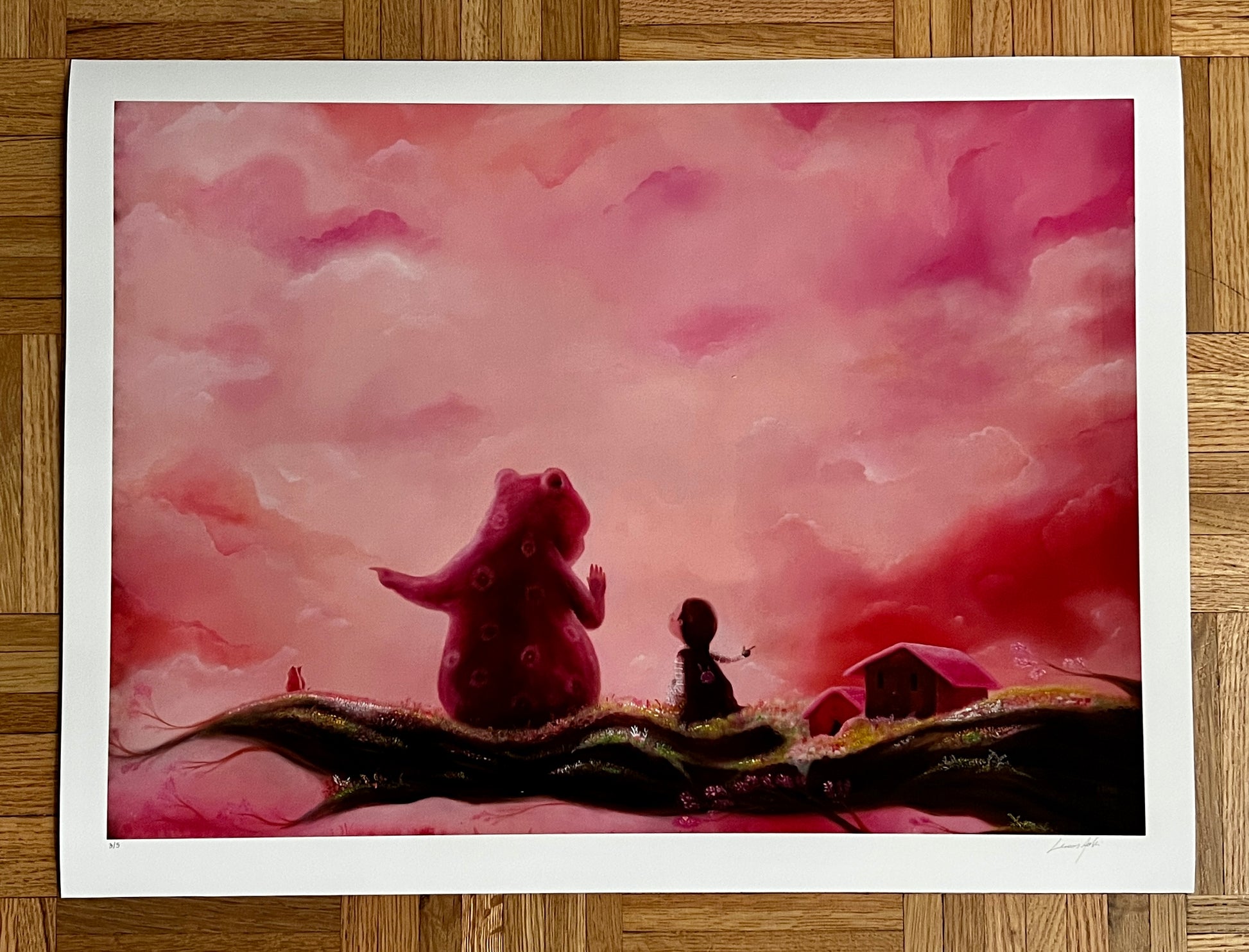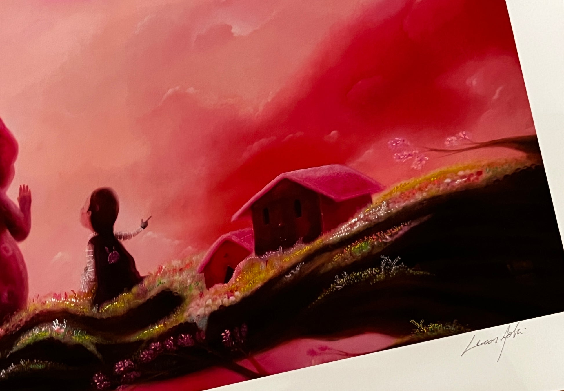 Arkivpigmenttrykk håndbehandlet med akrylmaling