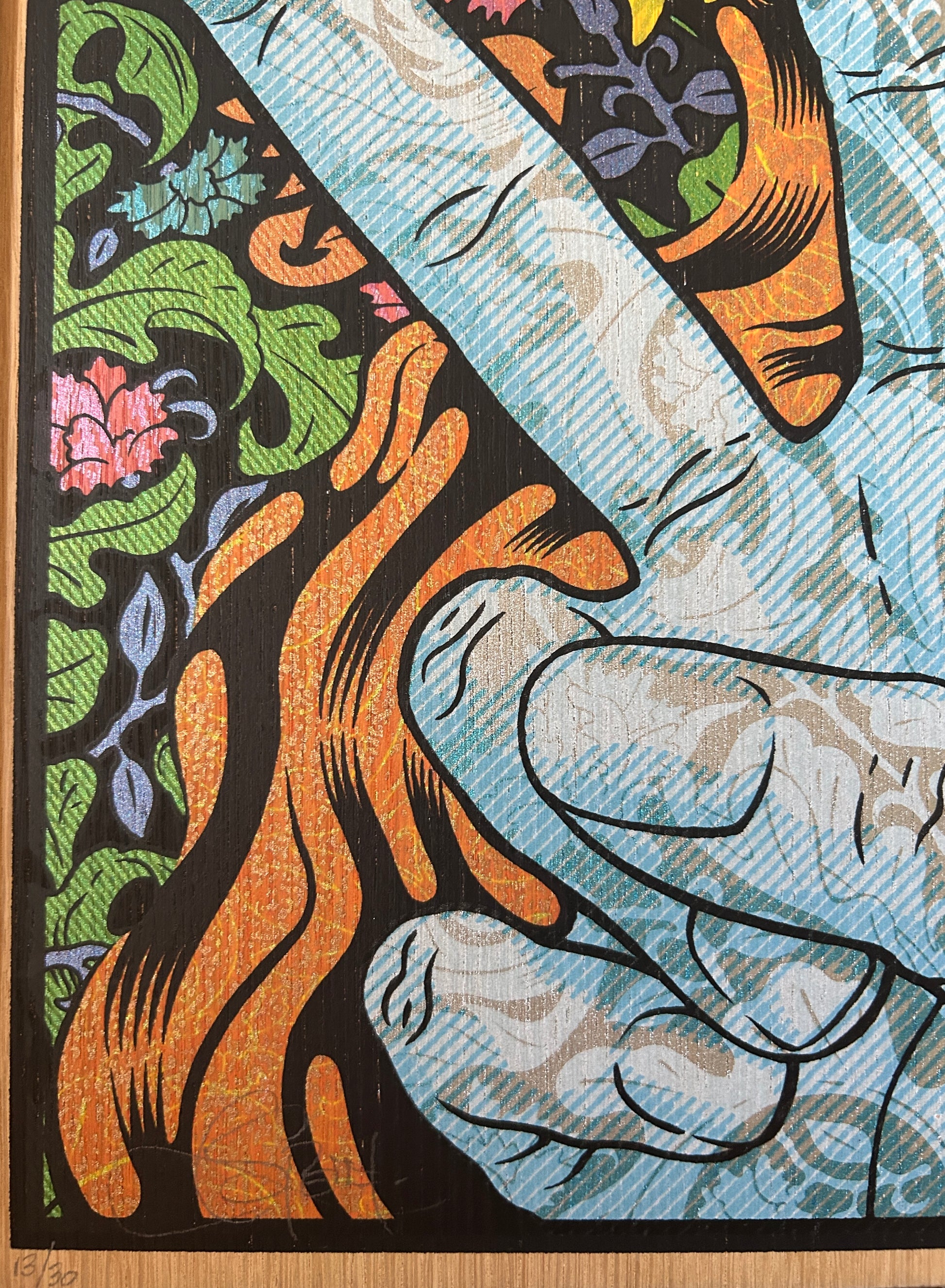 พิมพ์สกรีน 7 สีบนแผงไม้โอ๊คสีขาว