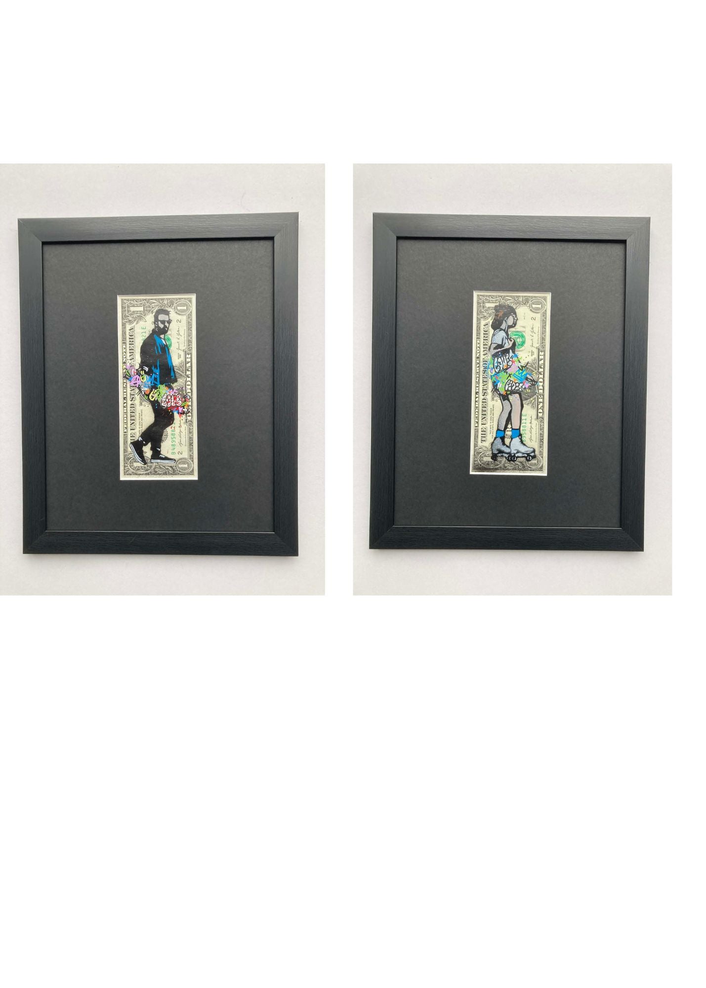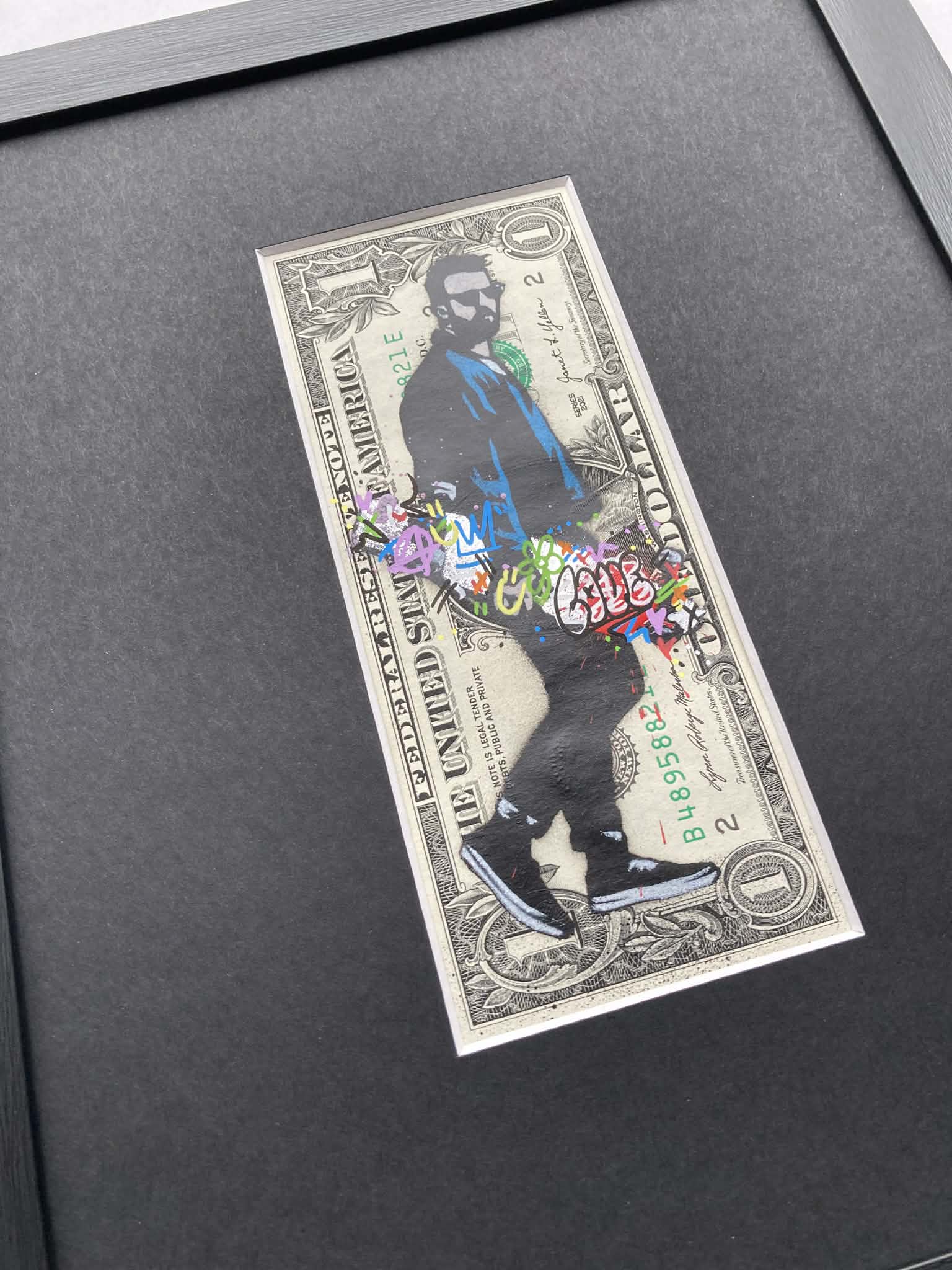 รุ่น Edition – เสื้อฮู้ดสีขาวกับรุ่นกางเกงยีนส์สีน้ำเงินวาดบนธนบัตร $2 ของแท้ที่ไม่ได้หมุนเวียนพร้อมลายฉลุ